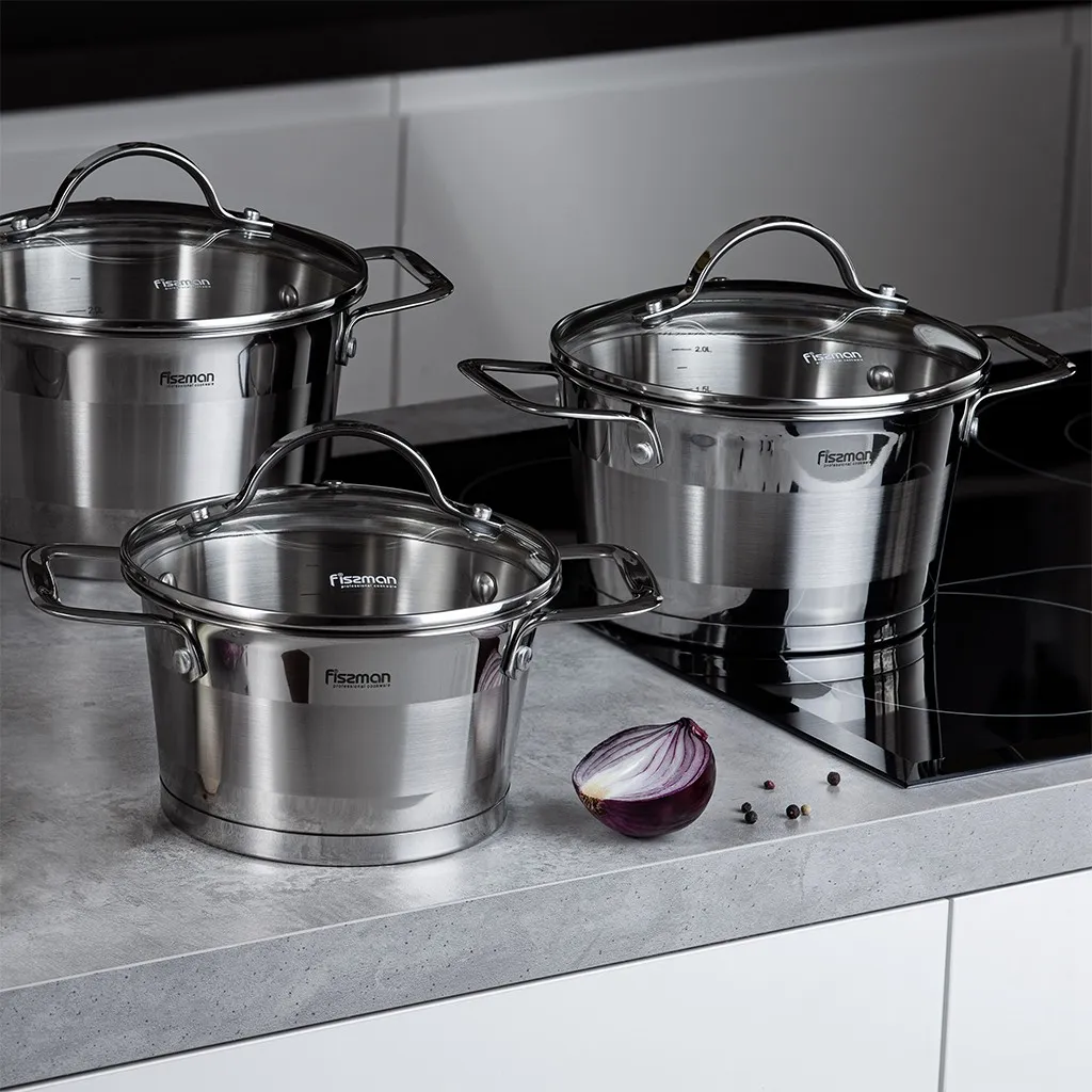 Создайте на своей кухне атмосферу уверенности и комфорта с серией TIERNO от Fissman — элегантной и функциональной посудой из нержавеющей стали, которая сочетает в себе передовые технологии, продуманную эргономику и современный дизайн.