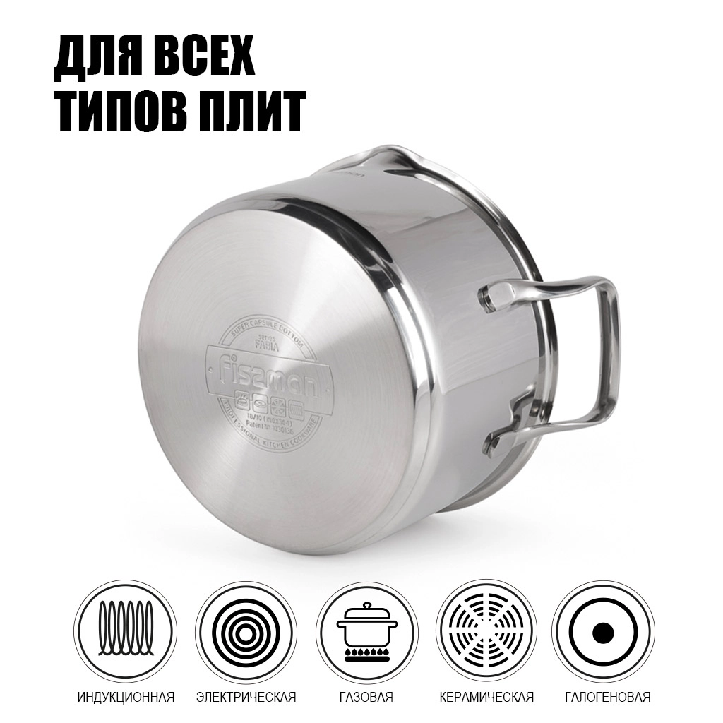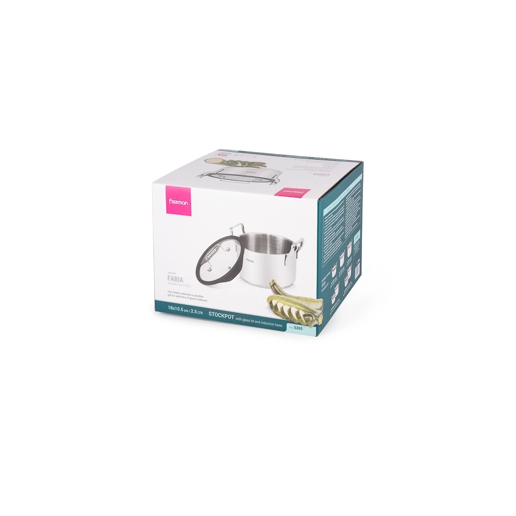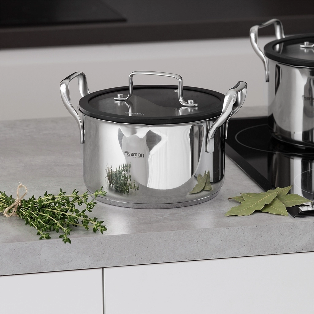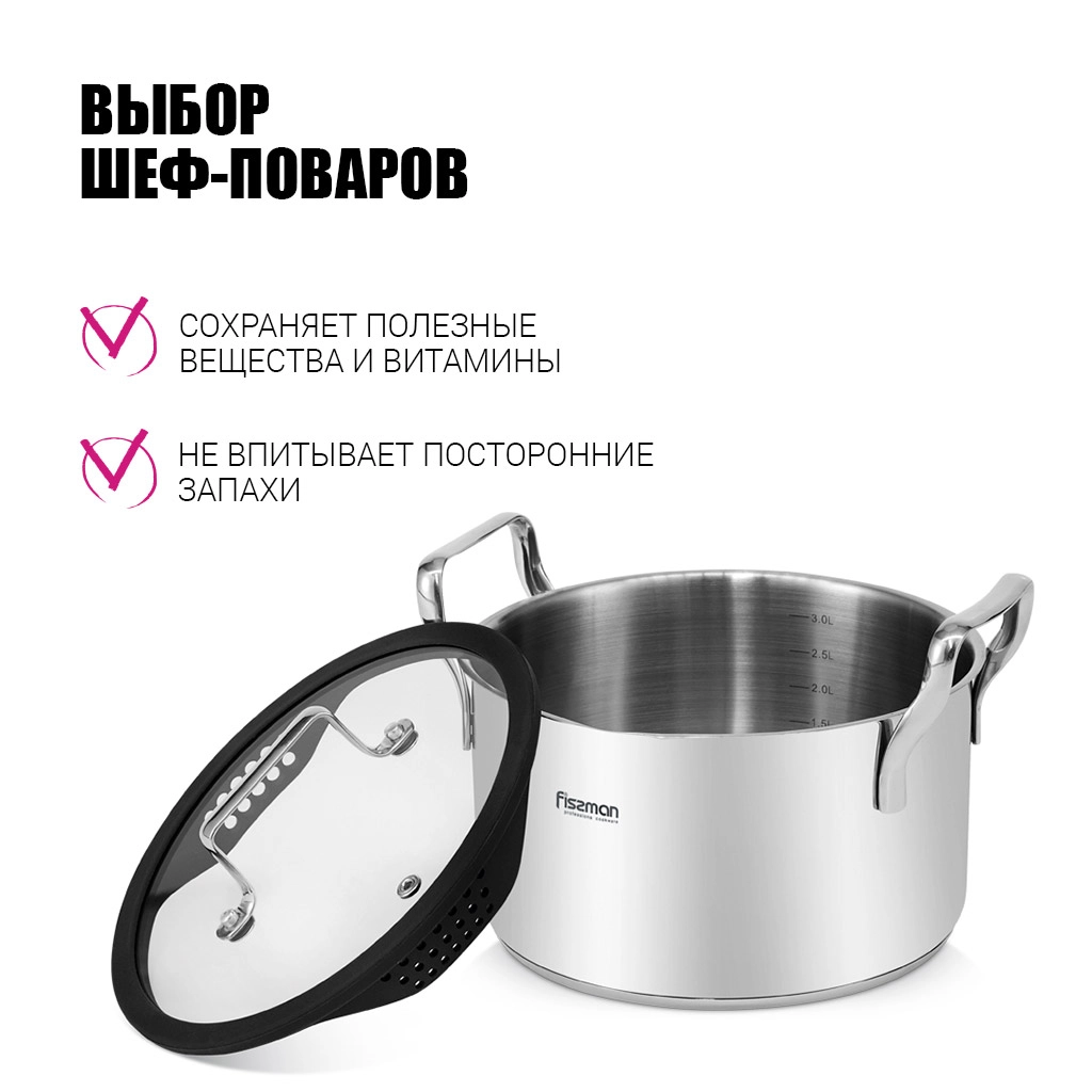 Компания FISSMAN является одним из лидеров современного посудного рынка. Бренд предлагает качественные и безопасные изделия для профессионального и бытового использования. Главный принцип, положенный в основу производства - забота о здоровье и долголетии. Объединяя инновации с опытом тысячелетий, технологи и дизайнеры марки создают посуду, которая по праву занимает первые строчки рейтингов. Серия FABIA – новое достижение бренда. Главными преимуществами которой являются: • Стальной корпус 18/10 (INOX304) (высококачественная нержавеющая сталь) • Многослойное капсульное индукционное дно (для всех типов плит, высокая теплопроводность) • Удобные ручки из нержавеющей стали - экономят пространство при хранении. Кастрюли можно складывать одна в другую • Мерная шкала (для контроля количества жидкости) • Прозрачная ударопрочная стеклянная крышка с силиконовым ободком и паровыпуском позволяет наблюдать за готовностью пищи, не открывая посуду, тем самым, исключая попадания брызг на кожу и одежду https://fissman.ru/catalog/kastryuli/kastryuli-iz-nerzhaveyushchey-stali/kastryuli-iz-nerzhaveyushchey-stali-2-l/kastryulya-iz-nerzhaveyushchey-stali-induktsionnaya-2-5-l-18-sm-fabia/