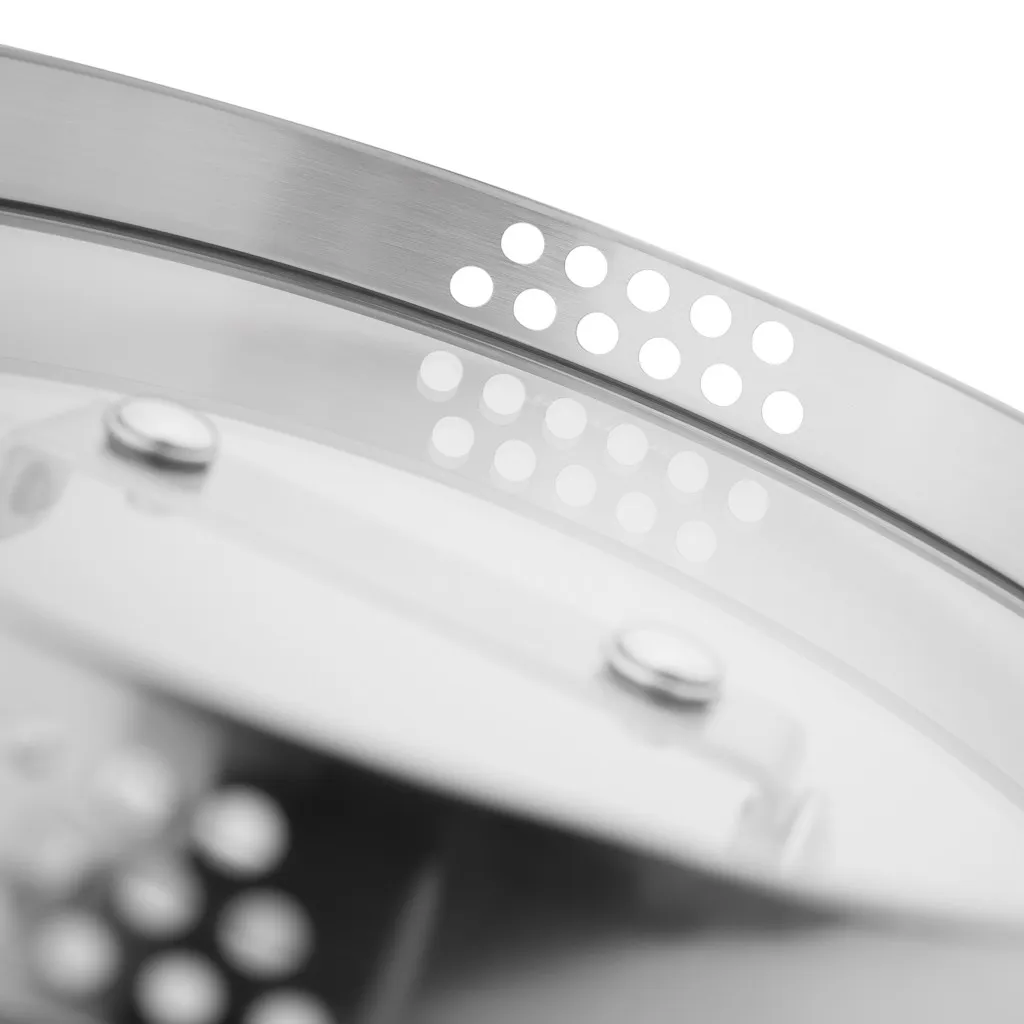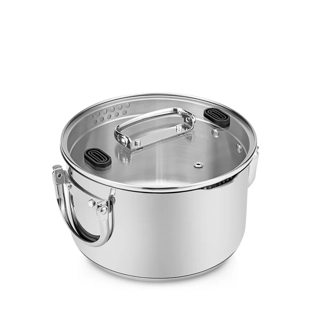 Главное отличие – сочетание складных ручек и крышки с бортиком для слива. В отличие от стандартных кастрюль, AVELIN позволяет сливать воду после варки макарон, картофеля или овощей прямо через крышку, не используя дополнительную посуду. Складывающиеся ручки экономят до 40% пространства в шкафу, что особенно важно для маленьких кухонь.