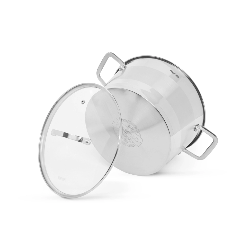 Каждая кастрюля серии изготовлена из прочной нержавеющей стали 18/10 (INOX304) — проверенного материала, известного своей устойчивостью к коррозии, долговечностью и абсолютной безопасностью для здоровья. Он сохраняет свои свойства даже при высоких температурах и не вступает в реакцию с продуктами.