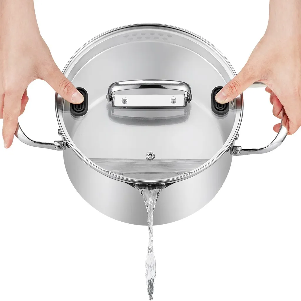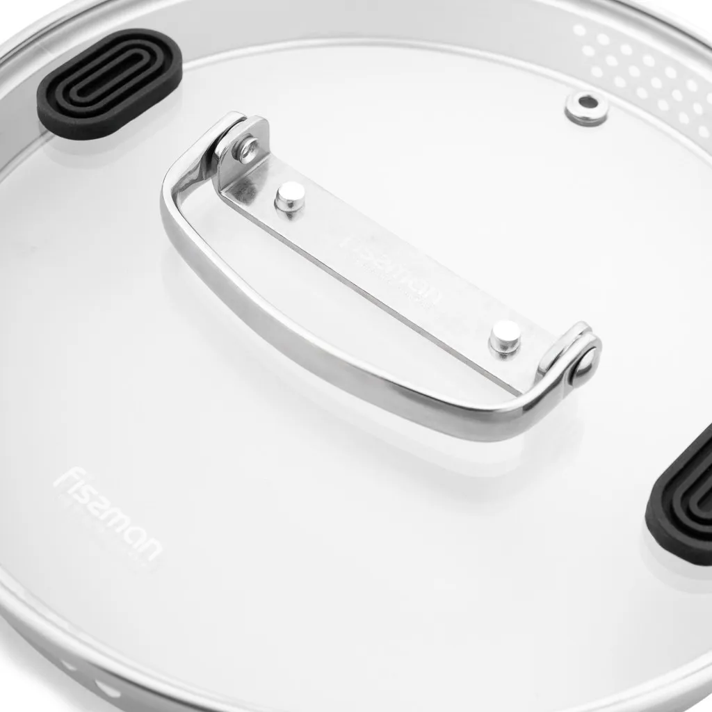 • Прозрачная ударопрочная стеклянная крышка с паровыпуском позволяет наблюдать за готовностью пищи, не открывая посуду, тем самым, исключая попадания брызг на кожу и одежду