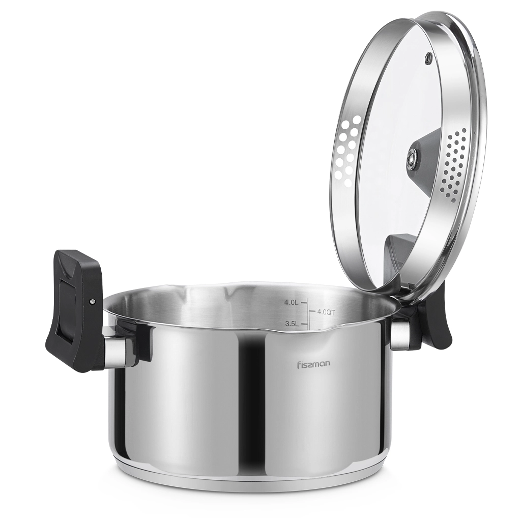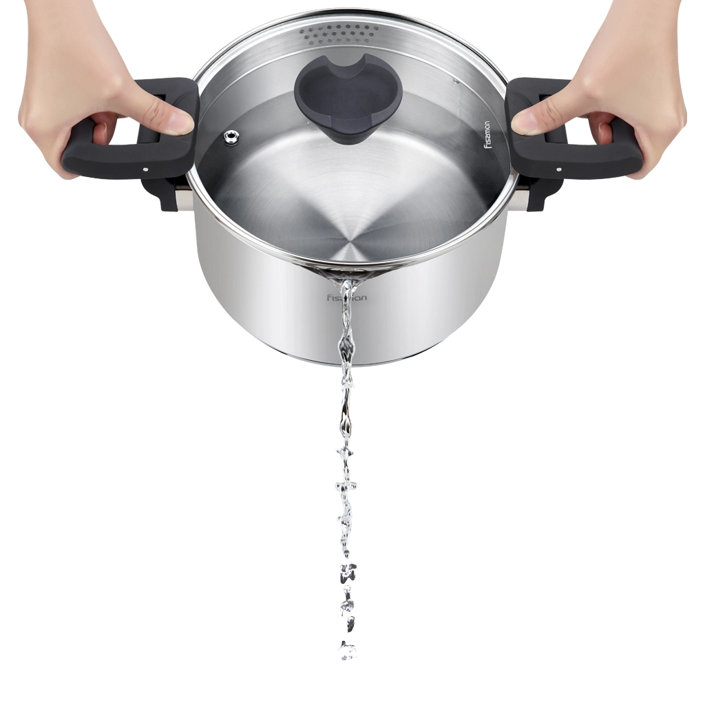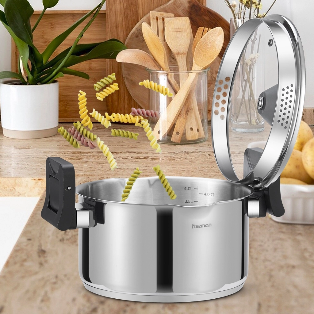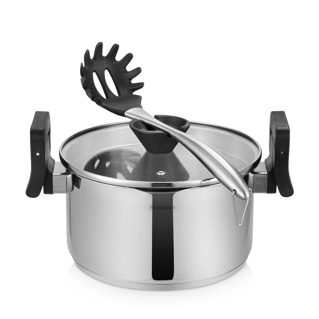 Уникальная разработка FISSMAN – кастрюля со складными бакелитовыми ручками! Они не только экономят пространство при хранении, а также служат прихваткой, удобно сливать лишнюю жидкость. Ручку на крышке можно использовать как подставку для кухонных принадлежностей. https://fissman.ru/catalog/kastryuli/kastryuli-iz-nerzhaveyushchey-stali/kastryuli-iz-nerzhaveyushchey-stali-4-l/kastryulya-so-skladnymi-ruchkami-22-sm-4-5-l-titania-nerzhaveyushchaya-stal/