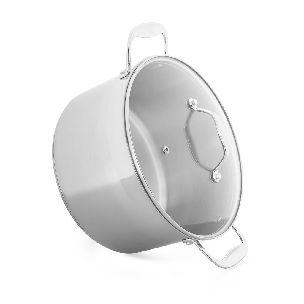 Серия PLATINO сделана из высококачественной нержавеющей стали марки 18/10 (INOX304), устойчивой к коррозии и простой в уходе. Многослойное капсульное дно обеспечивает равномерный нагрев и распределение тепла, сохраняя вкус и пользу продуктов. Индукционный слой делает посуду универсальной для всех типов плит.