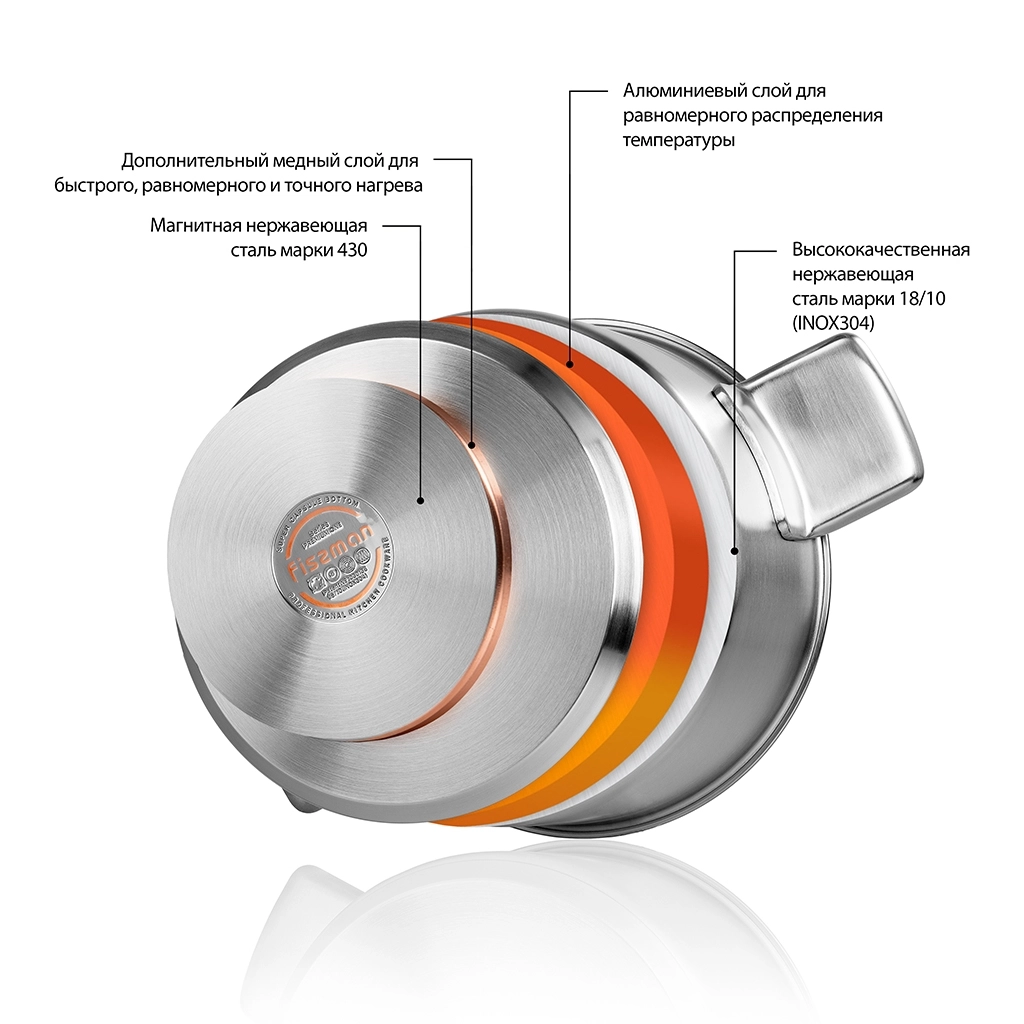 • многослойное дно с алюминиевой и медной вставками;Отличия: