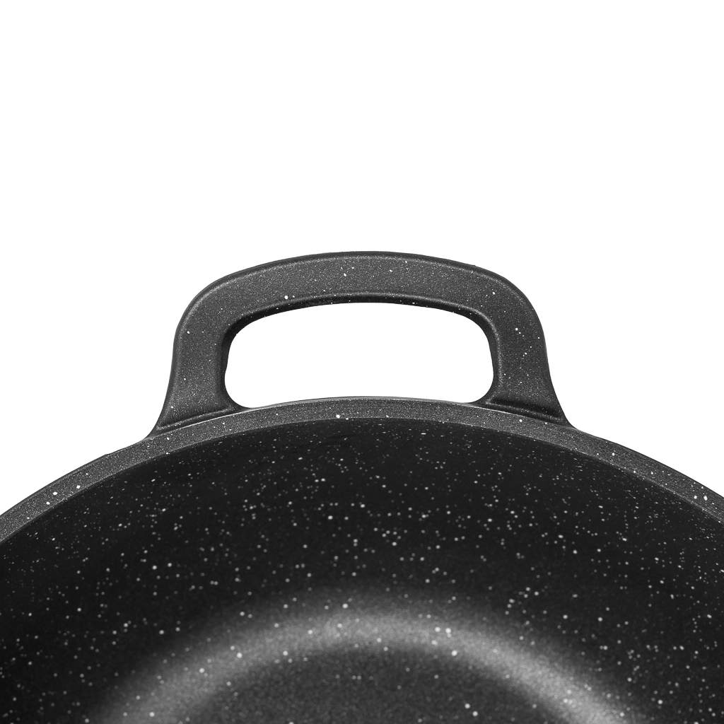 Одно из ключевых преимуществ Cook Pro — способность выдерживать нагрев до 300 градусов, что позволяет использовать казан на газовых и электрических плитах. Толстый и тяжёлый литой алюминий обеспечивает прочность, устойчивость к деформации и помогает сохранять тепло внутри казана.