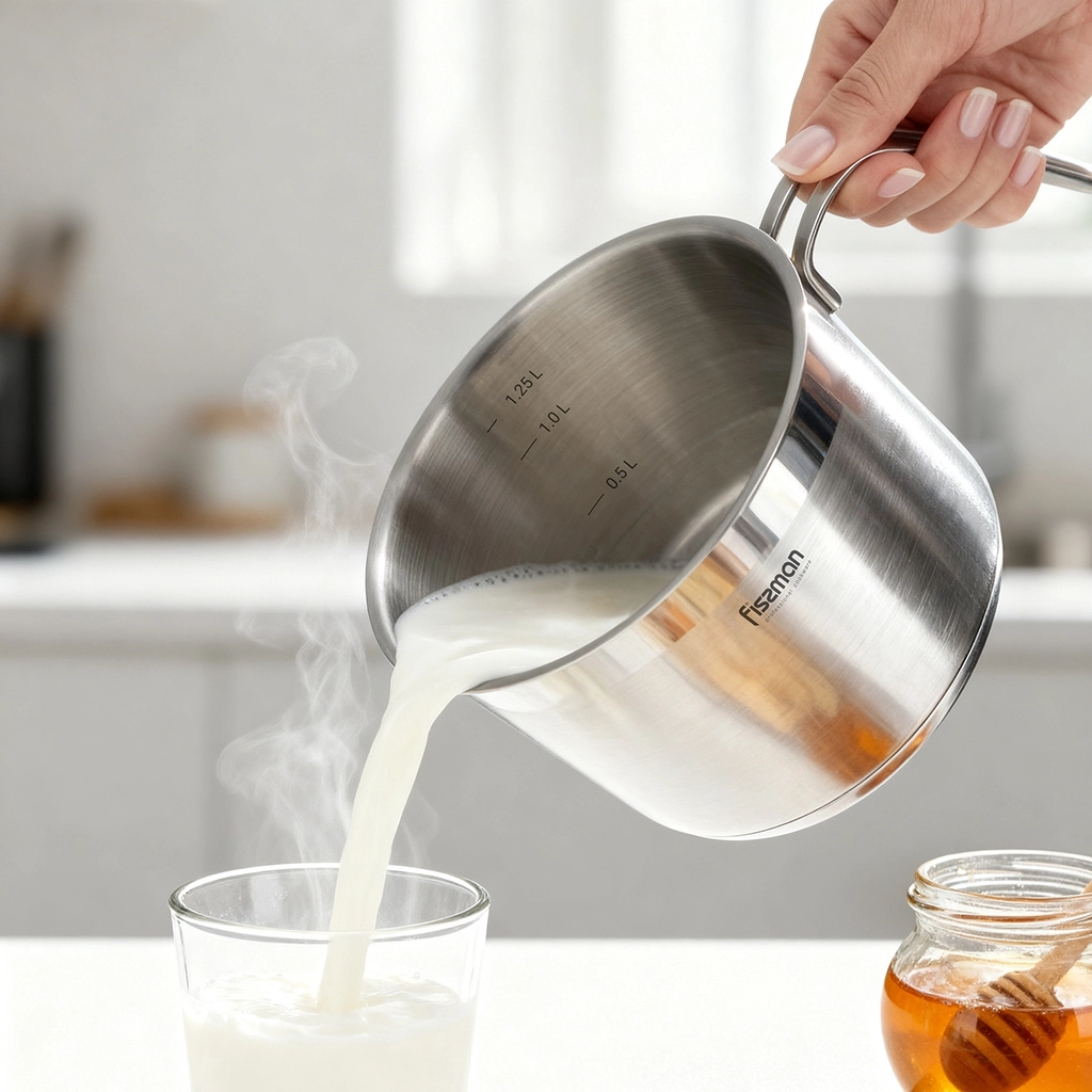 Kомпания FISSMAN позаботилась о том, чтобы процесс кипячения молока стал приятным и необременительным занятием. Хорошо продуманная конструкция корпуса стальной кружки существенно упрощает процесс кипячения молока: оптимально подобранная толщина многослойного капсульного дна с алюминиевой сердцевиной обеспечивает быстрый и равномерный нагрев от конфорок плиты любого типа, включая индукционную, а удобная ручка и носик делают использование кружки максимально комфортным – удобно держать и наливать молоко. https://fissman.ru/catalog/kastryuli/kovshi/kovshi-induktsionnye/kruzhka-dlya-kipyacheniya-moloka-1-5-l-iz-nerzhaveyushchey-stali/