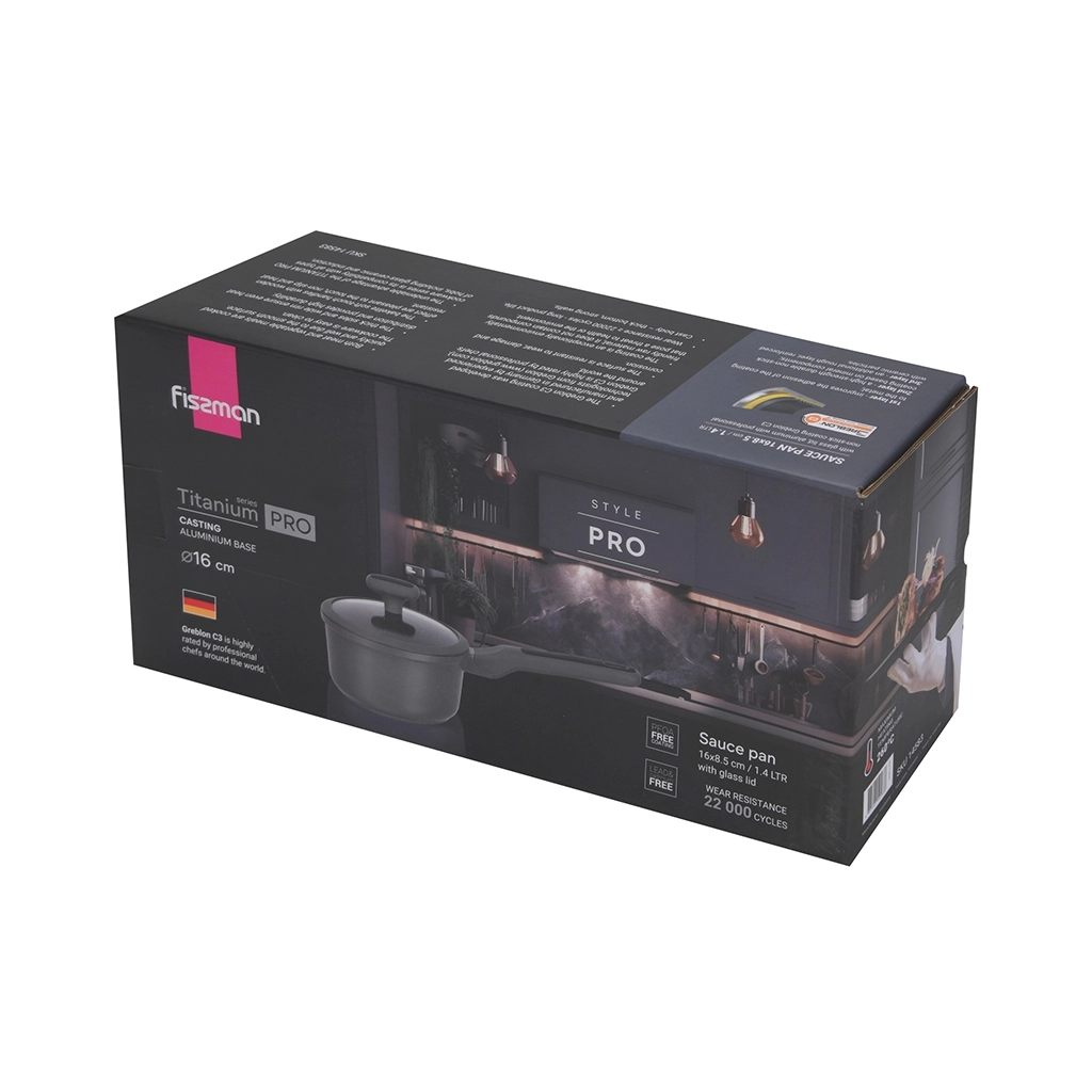 Компания FISSMAN непрерывно улучшает свою продукцию, чтобы сделать жизнь поваров проще и удобнее. Серия TITANIUM PRO — это новейшая разработка производителя. Антипригарное покрытие Greblon С3, литой корпус, толстое многослойное индукционное дно, широкий борт, стильный дизайн, современный цвет, бакелитовые ручки с эффектом soft-touch — все это делает серию TITANIUM PRO незаменимым помощником на вашей кухни, убедитесь в этом сами! https://fissman.ru/catalog/kastryuli/kovshi/kovshi-iz-alyuminiya/kovsh-antiprigarnyy-iz-litogo-alyuminiya-16-sm-1-4-l-titanium-pro/