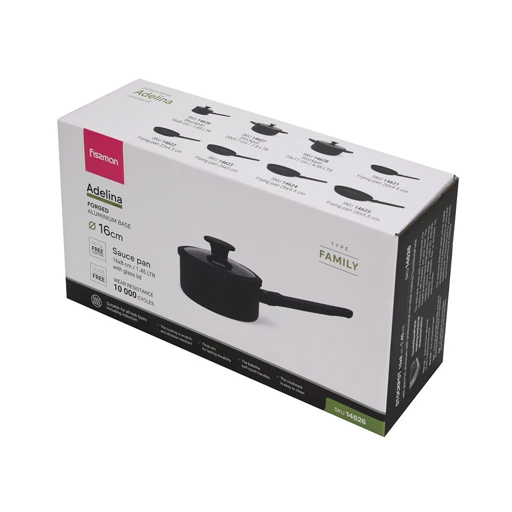 Серия ADELINA с покрытием TouchStoneForte FISSMAN покорит Вас с первого взгляда. Кованая алюминиевая основа, качественное антипригарное покрытие, классический дизайн, делают коллекцию ADELINA любимой и желанной на каждой кухне.