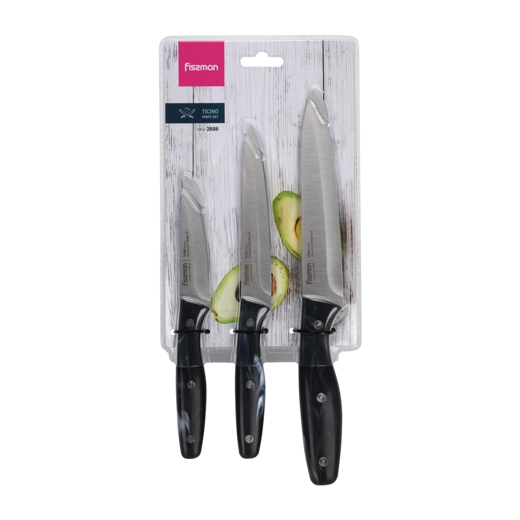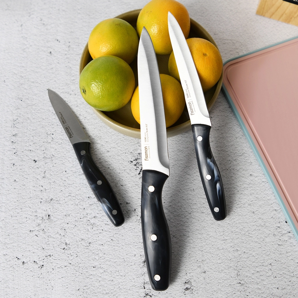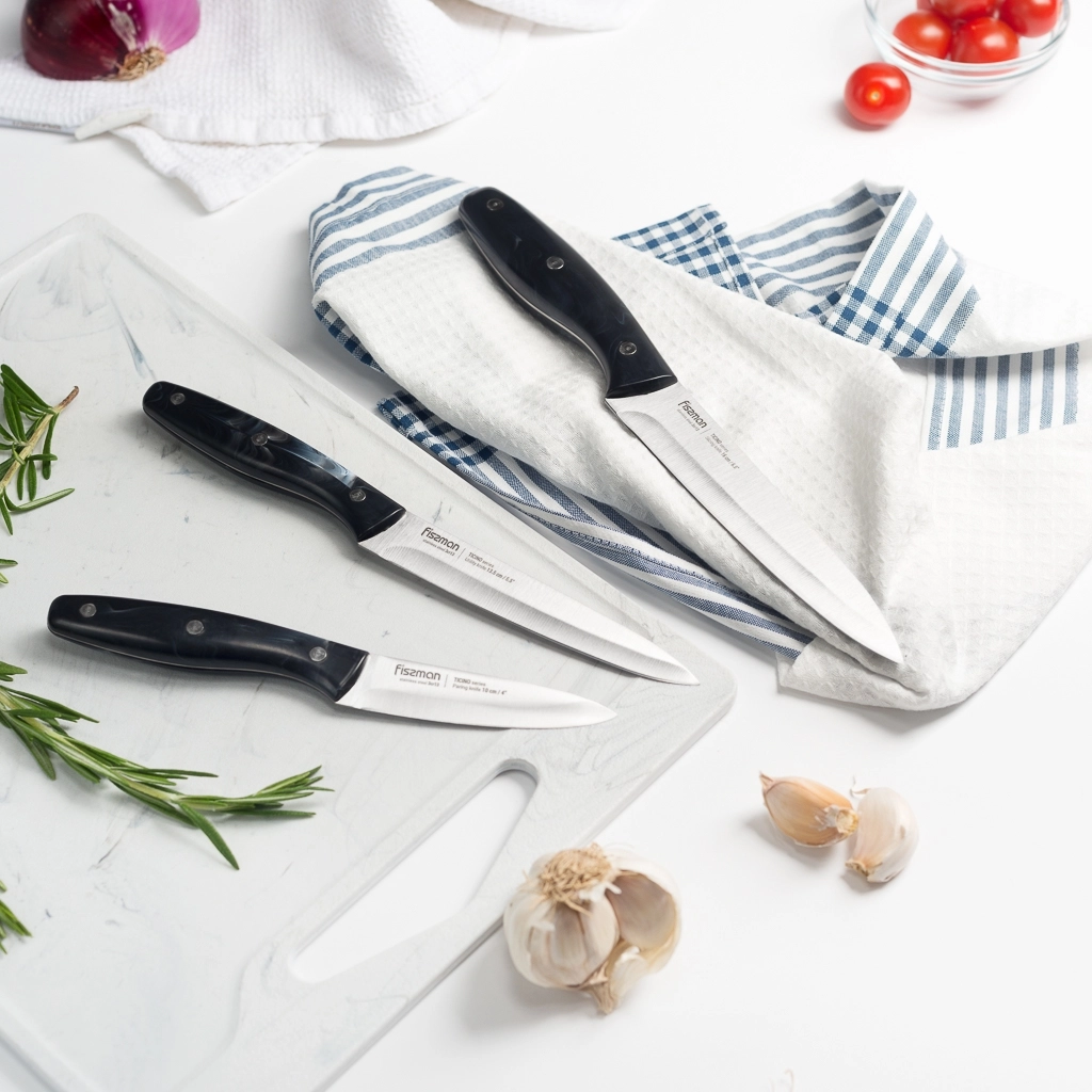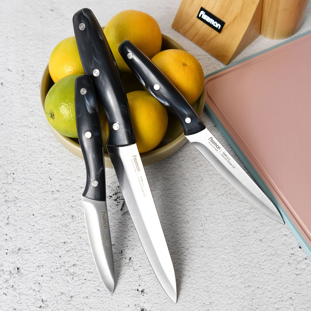 Искусство кулинарии требует особого отношения к каждому продукту и действию. Набор FISSMAN разработан с учетом этого принципа. В состав входят 3 ножа различного назначения: