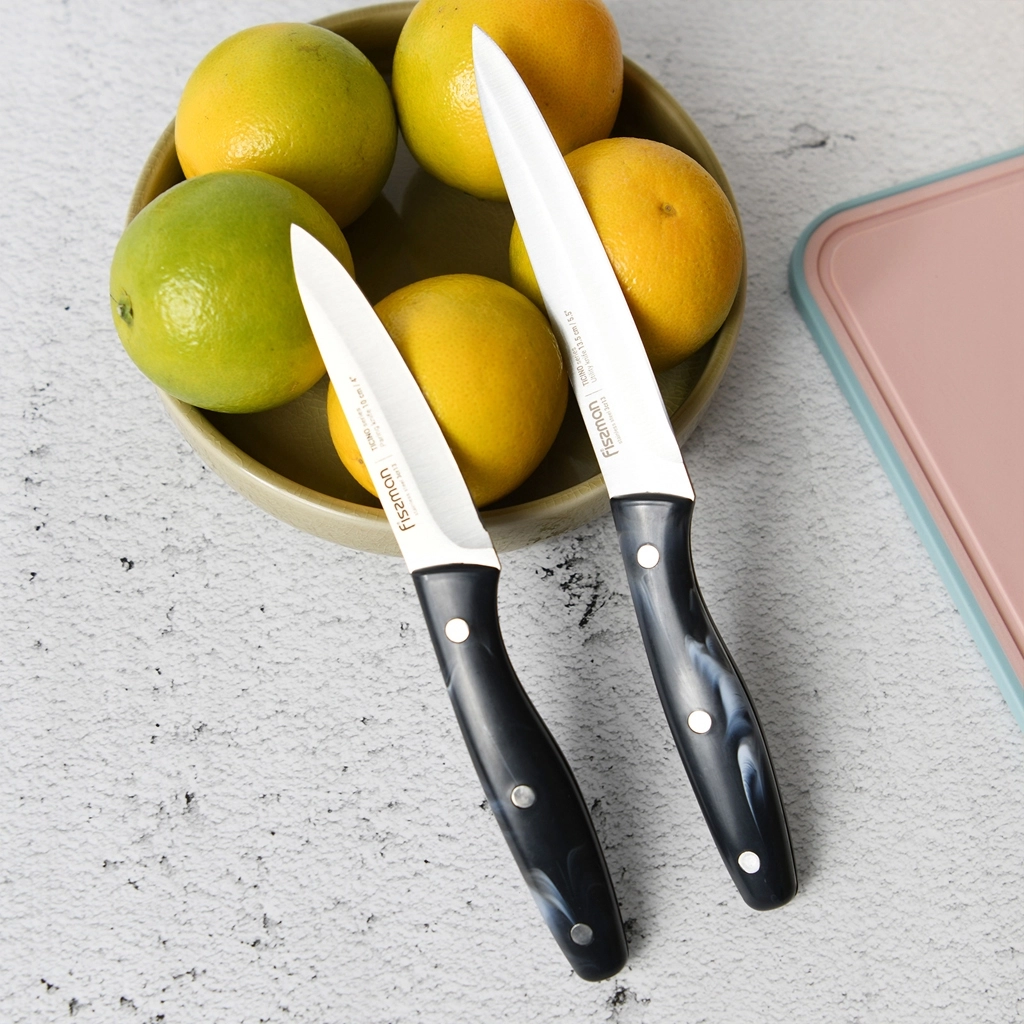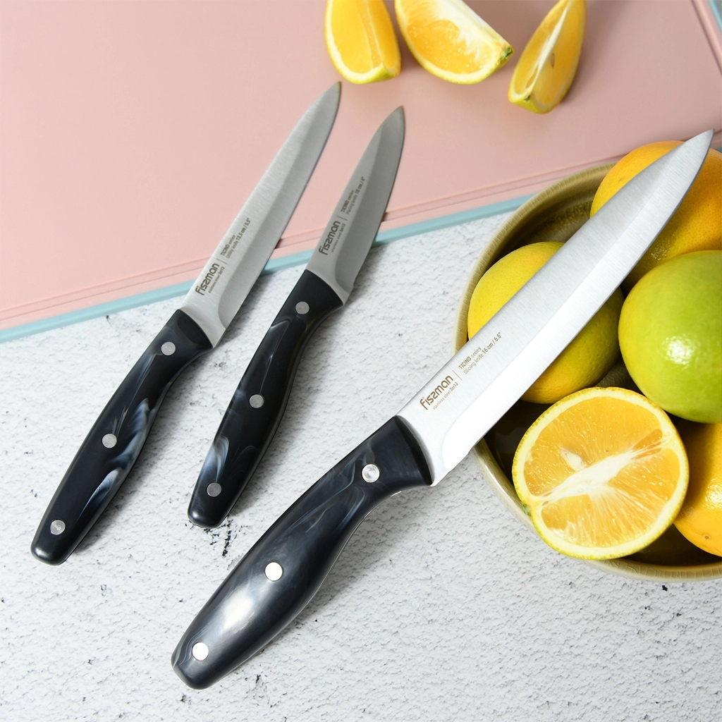 • Овощной нож 10 см: им легко нарезать любые овощи, фрукты, корнеплоды, придавать причудливую форму, избавлять от кожуры. https://fissman.ru/catalog/kuhonnye-nozhi/nabory-nozhey/luchshie-nabory-kukhonnykh-nozhey/nabor-3-kh-kukhonnykh-nozhey-iz-nerzhaveyushchey-stali-ticino/