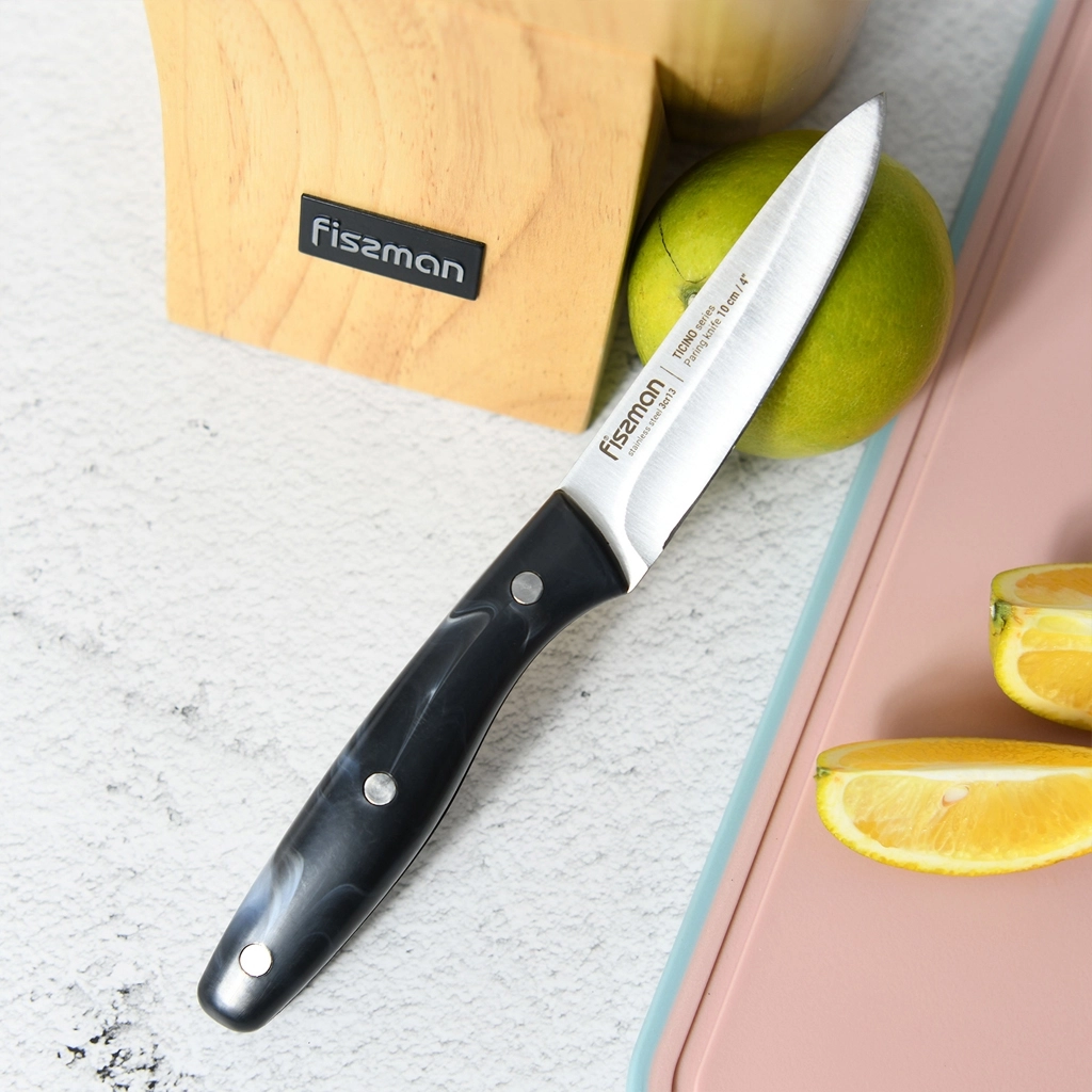 Ножи FISSMAN серии TICINO произведены из нержавеющей стали 3Cr13, созданной по высоким стандартам качества. Изделия из сплава данной марки по твердости, легкости и режущим свойствам не уступают японским аналогам. Лезвия отличаются повышенной устойчивостью к истиранию, что гарантирует долгий срок службы. Ручка выполнена из прочного пластика — это обеспечивает удобство в использовании и простоту в уходе.