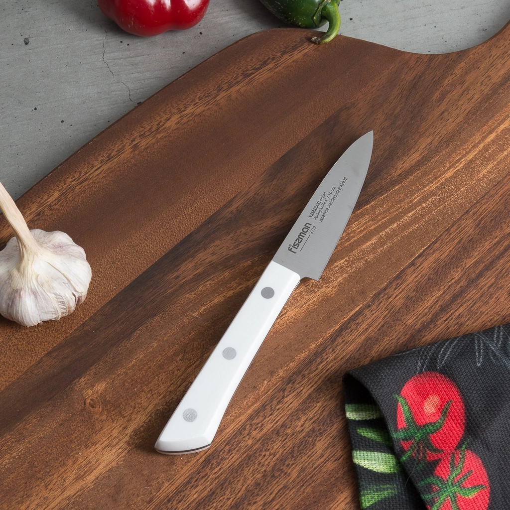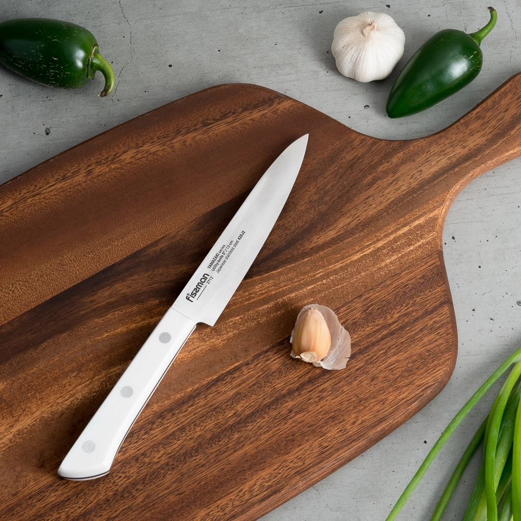 Ножи FISSMAN серии YAMAZAKI произведены из японской нержавеющей стали 420J2, созданной по высоким стандартам качества. Лезвия отличаются повышенной устойчивостью к истиранию, что гарантирует долгий срок службы. Ручка выполнена из прочного пластика — это обеспечивает удобство в использовании и простоту в уходе.