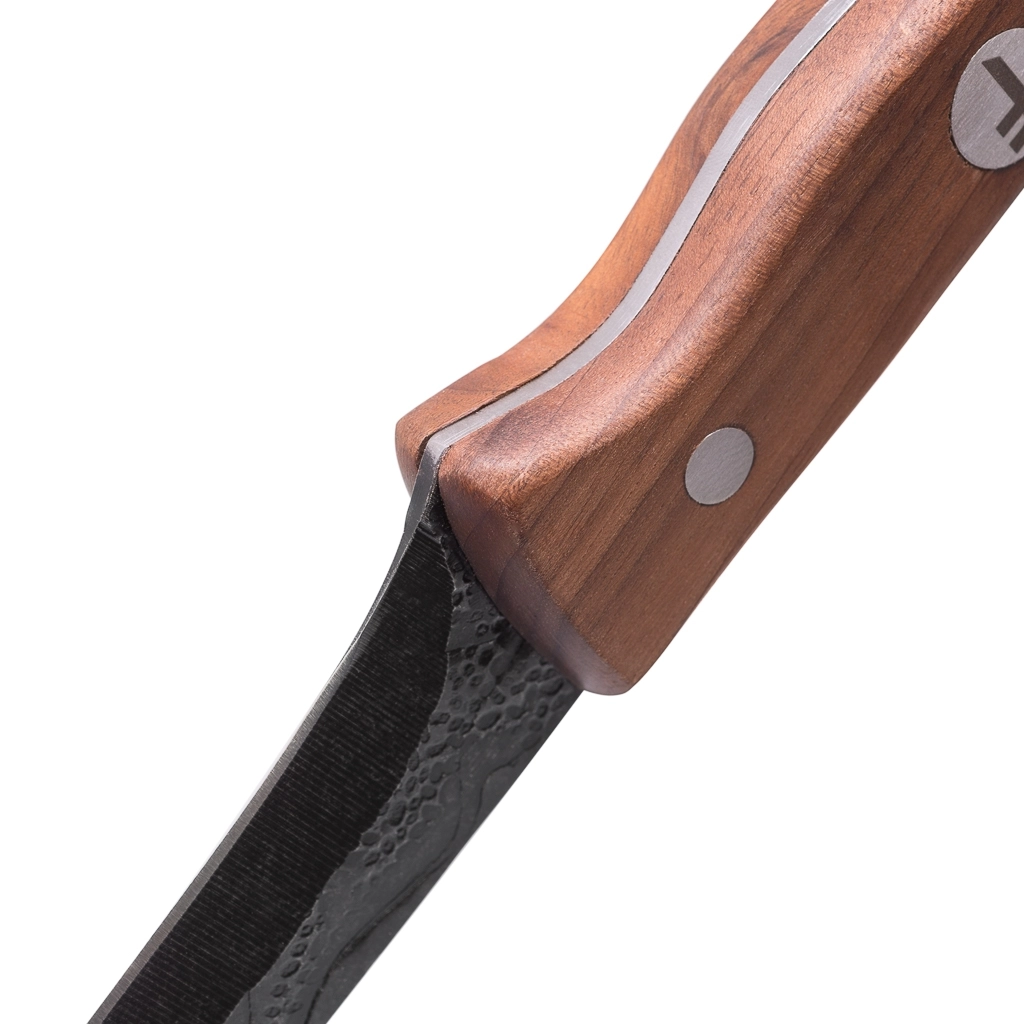 Нож удобно лежит в руке и действительно пригодится в походе, на рыбалке, охоте, обработке дерева, приготовлении пищи и во время других видов отдыха на природе. Элегантная эргономичная ручка из ценной древесины ореха имеет форму, которая всегда обеспечит лучший захват.