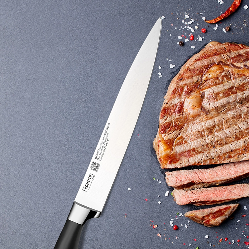 Гастрономический нож выбор знатоков. Он подойдет для нарезки любых продуктов на идеально тонкие кусочки благодаря длинному и узкому лезвию. Он пригодится и для приготовления блюд японской кухни – суши и сашими.