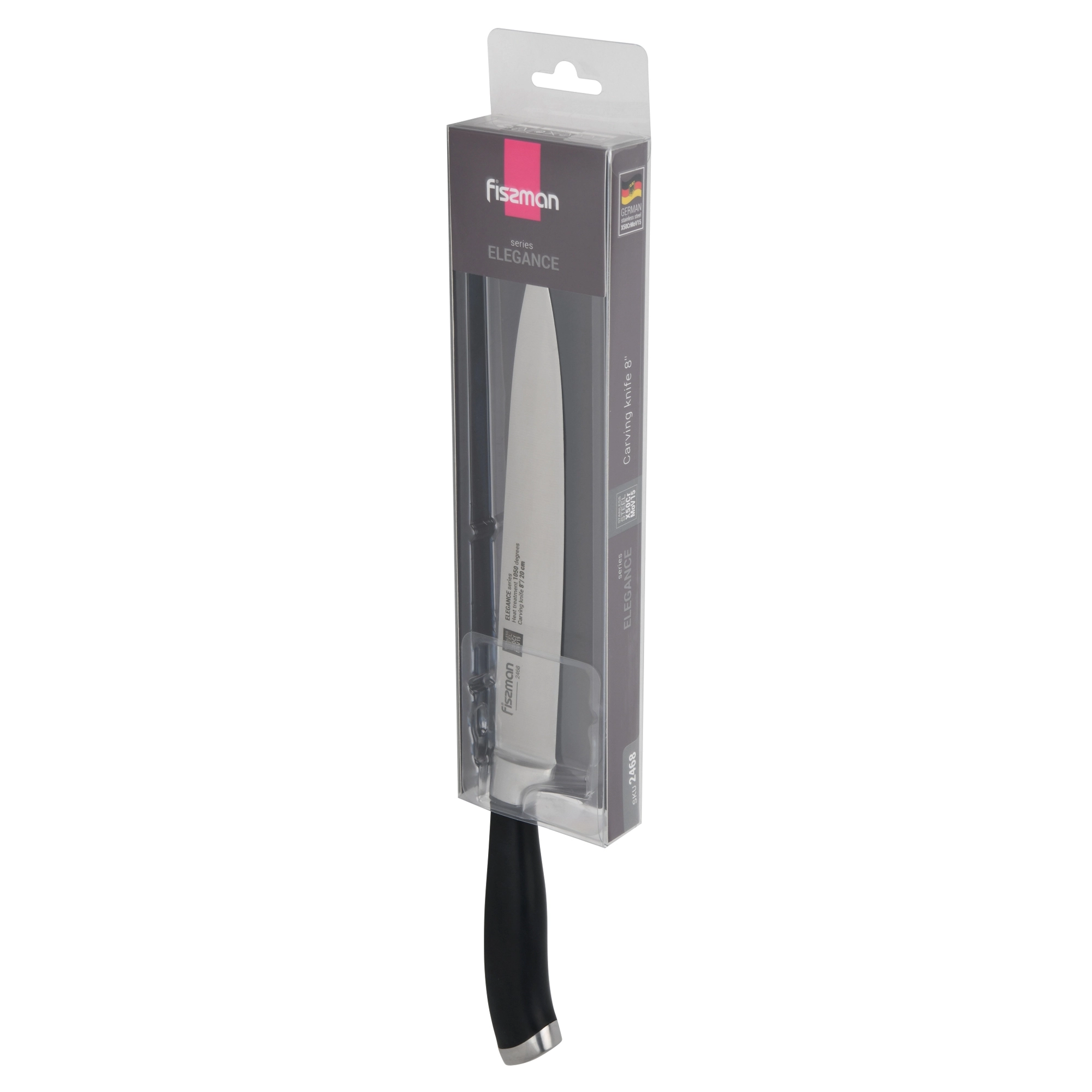 Кухонные ножи серии ELEGANCE выполнены из высоколегированной немецкой стали X50CrMoV15, закаленной до 57 единиц по шкале Роквелла.