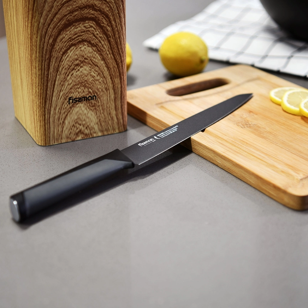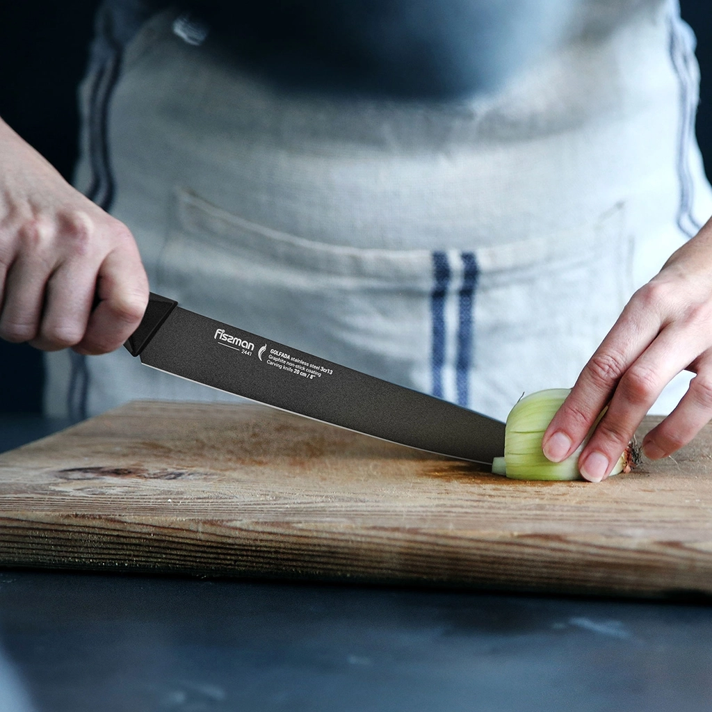 Гастрономический нож выбор знатоков. Он подойдет для нарезки любых продуктов на идеально тонкие кусочки благодаря длинному и узкому лезвию. Он пригодится и для приготовления блюд японской кухни – суши и сашими.