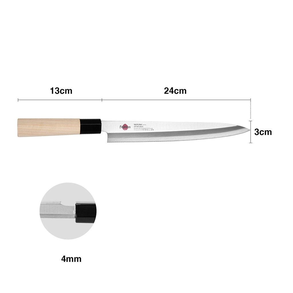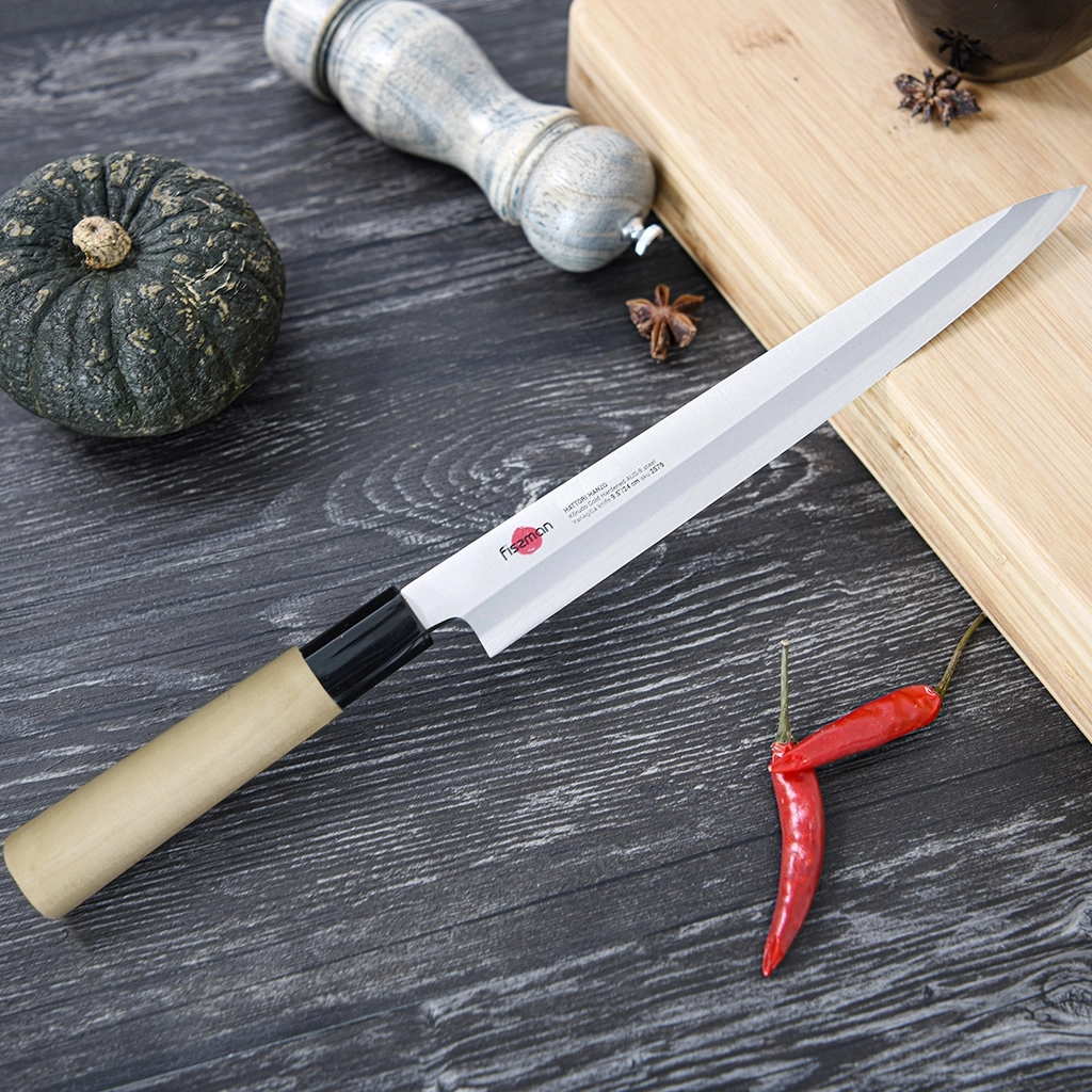 В кулинарном мире часто говорят, что самый важный инструмент на кухне — это хороший нож. Правильный нож может стать огромным подспорьем в приготовлении красивых блюд и обеспечить оптимальную безопасность на кухне. Использование правильно изготовленного и заточенного ножа означает, что у вас будет больше контроля над тем, что вы режете. Резать удобным и острым ножом намного приятнее. Он более эффективен и может выполнять работу быстро и хирургически точно, независимо от того, нарезаете ли вы зелень или огромную тыкву с мускатным орехом. Именно поэтому компания FISSMAN представляет ножи и кухонные топорики совершенно нового уровня, разработанные в городе Секи, префектуры Гифу. Где более 800 лет назад первые кузнецы основали мастерские для ковки острейших мечей известных по всей Японии, а через несколько столетий уже эти наработки были использованы в производстве знаменитых местных ножей. Наши ножи вдохновлены Японией, они дышат духом и страстью бескомпромиссного кузнечного мастерства. https://fissman.ru/catalog/kuhonnye-nozhi/nozhi-dlya-ryby/nozhi-dlya-ryby-s-dlinoy-lezviya-24-sm/nozh-kukhonnyy-yanagiba-24-sm-dlya-sushi-i-sashimi-kensei-hanzo/