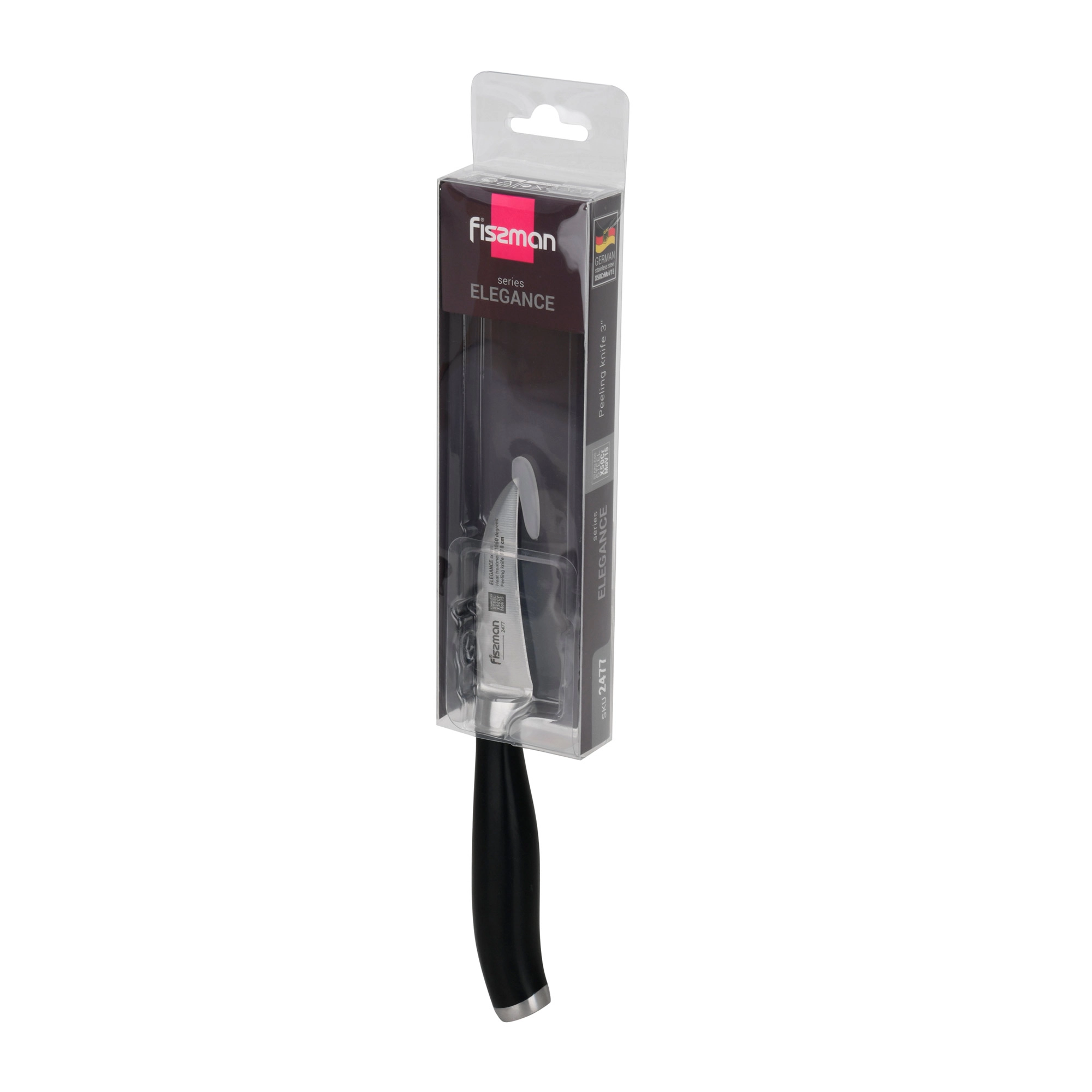 Кухонные ножи серии ELEGANCE выполнены из высоколегированной немецкой стали X50CrMoV15, закаленной до 57 единиц по шкале Роквелла.