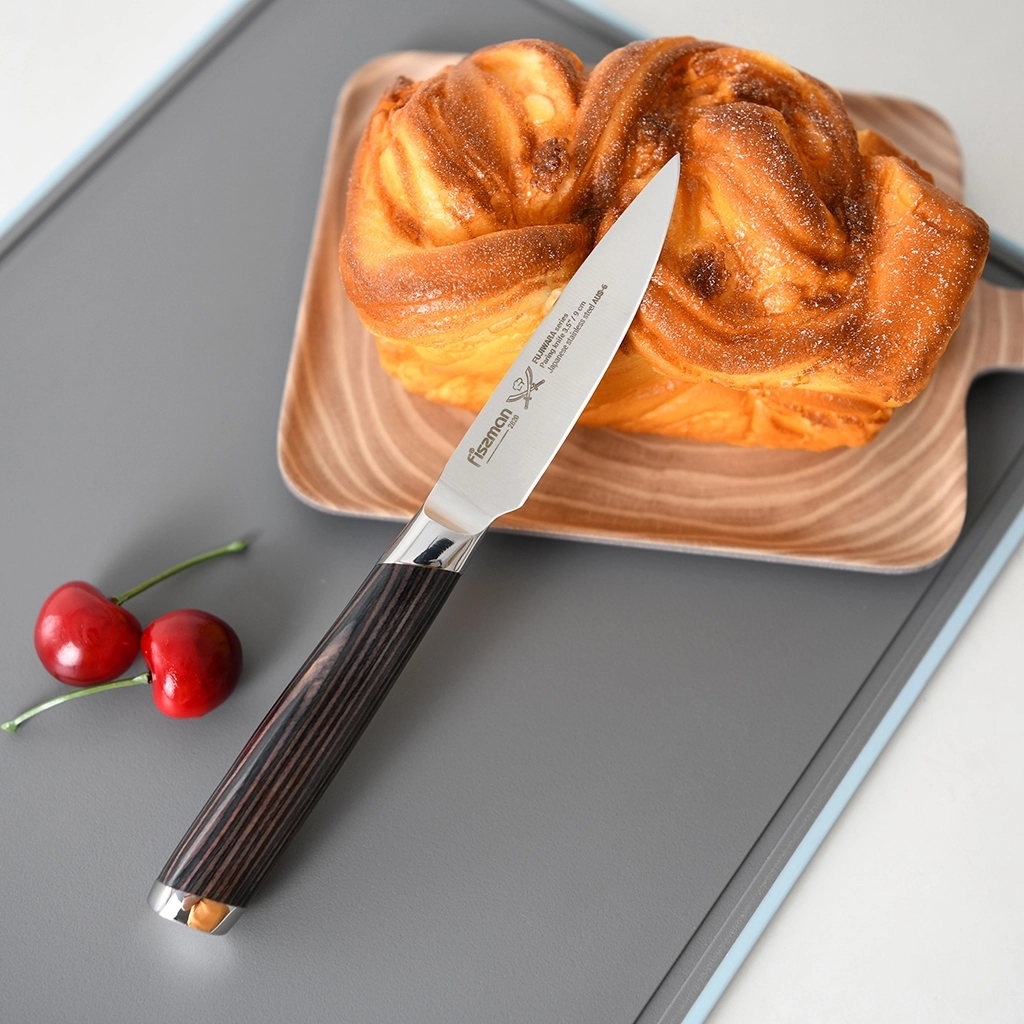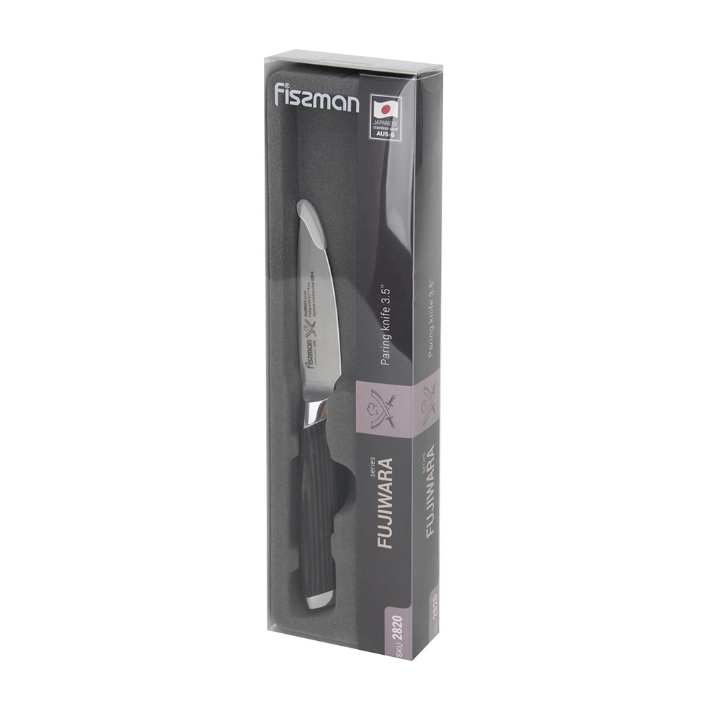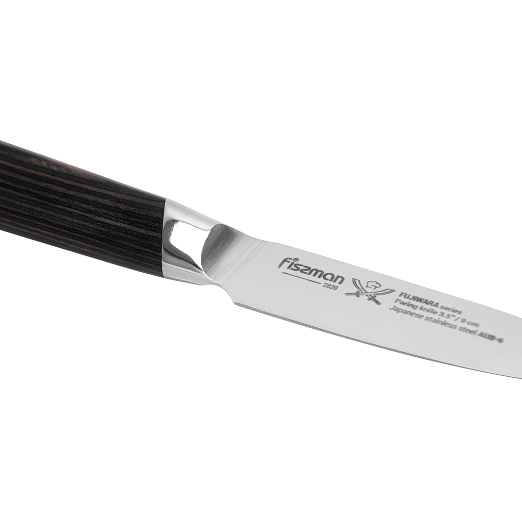 Кухонные ножи серии FUJIWARA выполнены из высоколегированной японской стали AUS-6, закаленной до 57 единиц по шкале Роквелла.