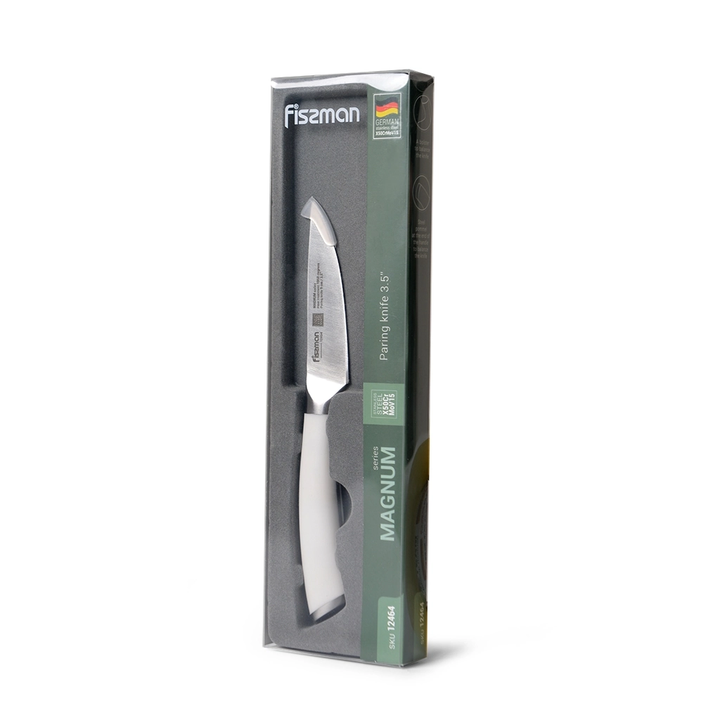 Кухонные ножи серии MAGNUM выполнены из высоколегированной немецкой стали X50CrMoV15, закаленной до 57 единиц по шкале Роквелла.