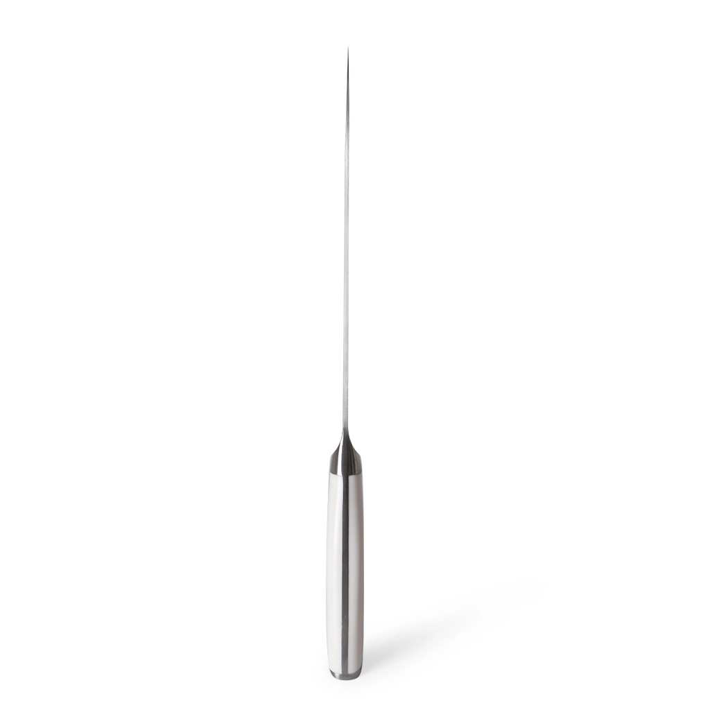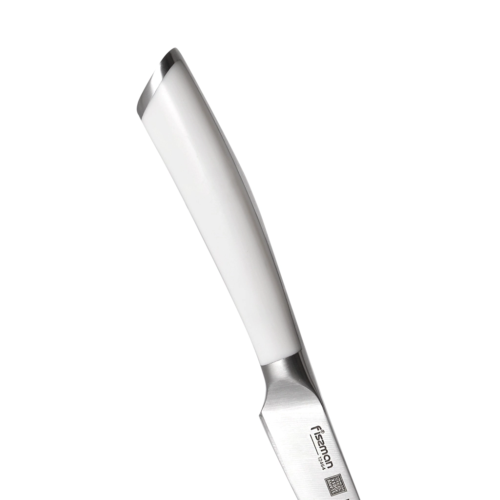 Рукоятка уникальной формы из АБС пластика выполнена без единой заклепки. Это обеспечивает превосходную сбалансированность ножа и безопасность работы.