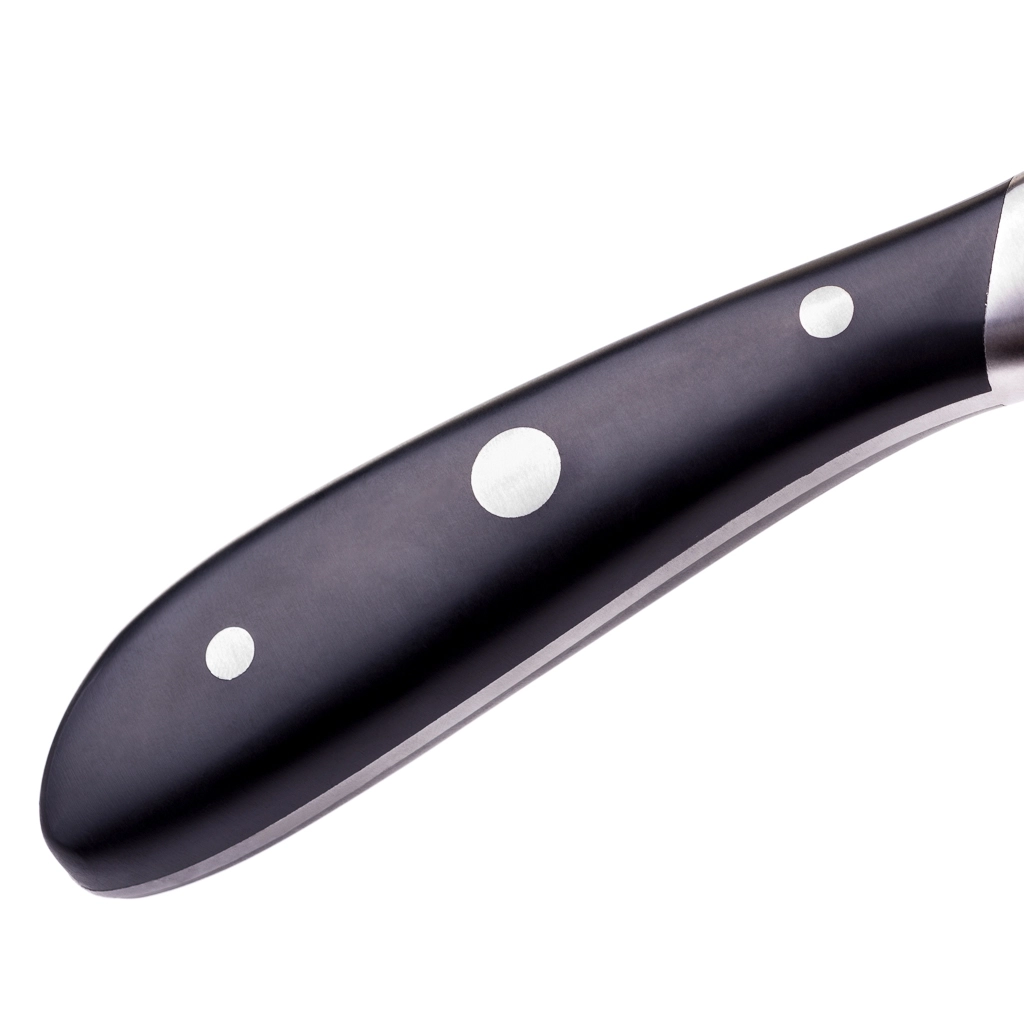 Все элементы ножа подогнаны вручную, что обеспечивает высокий уровень надежности и гигиены.
