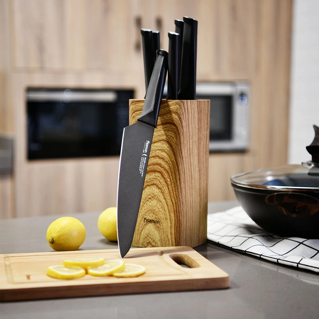 Лезвия имеют двухстороннюю симметричную заточку по всей длине режущей кромки, что обеспечивает легкую нарезку и разделку.