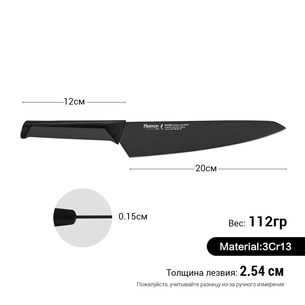 К достоинствам ножей из 3Cr13 нужно отнести прочность, твердость, устойчивость к износу. https://fissman.ru/catalog/kuhonnye-nozhi/nozhi-povarskie/povarskie-nozhi-dlina-klinka-20-sm/nozh-povarskoy-20-sm-golfada/