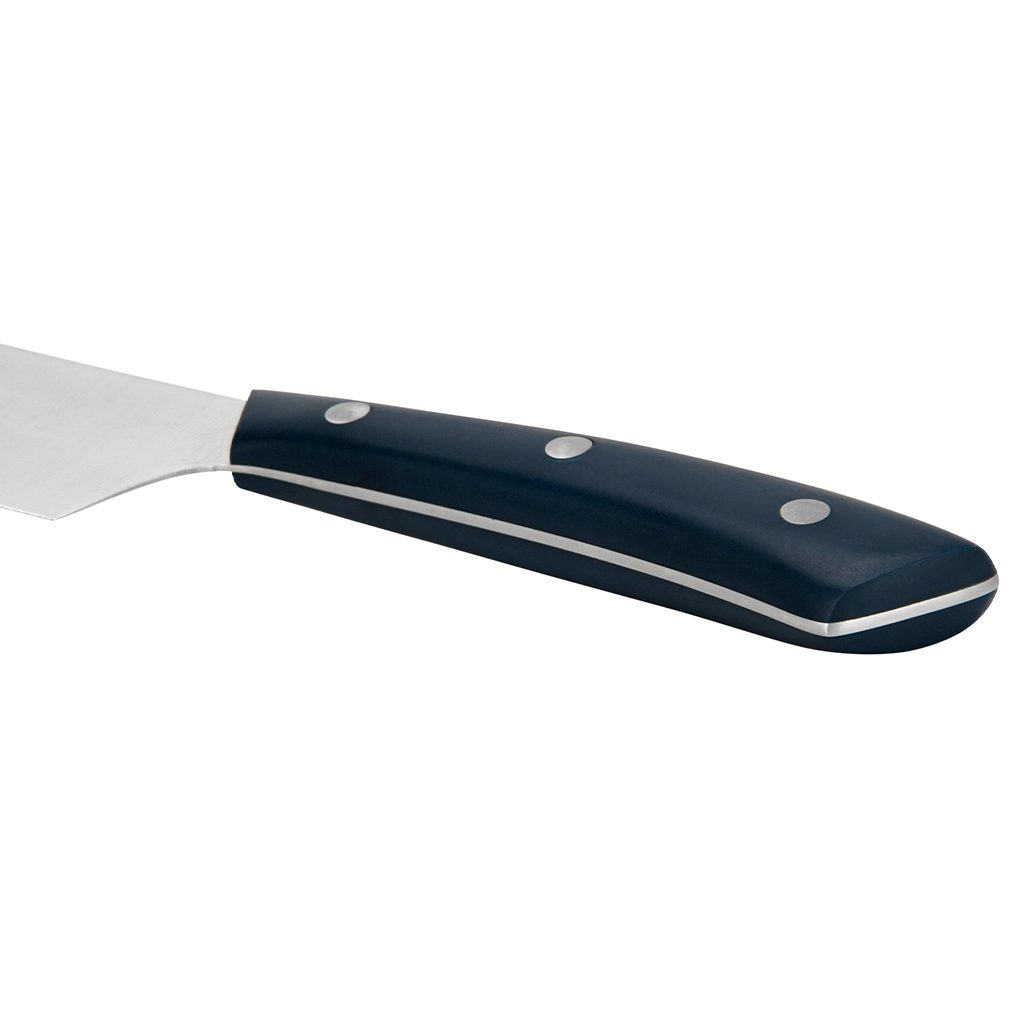 Большой Поварской нож самый важный на любой кухне. Лезвие длиной 20см отлично подходит для разделки мяса и рыбы, нарезки овощей, пряных душистых трав. Можно отбивать заготовки для стейков и даже разбить хитиновый панцирь морских ракообразных. Широкой стороной лезвия удобно давить чеснок и душистый перец.