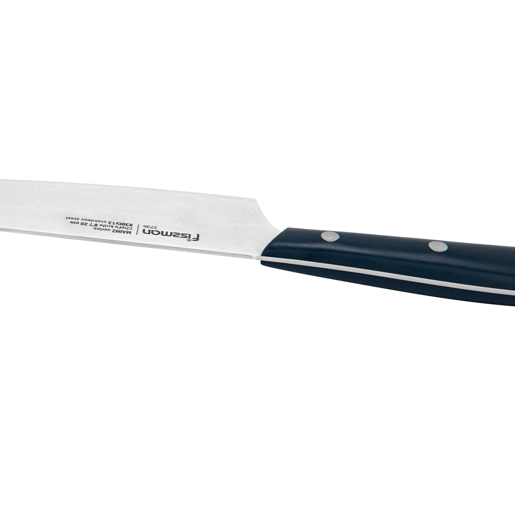 Классическая европейская заточка, симметричная по всей длине режущей кромки, обеспечит невероятное удобство при работе. https://fissman.ru/catalog/kuhonnye-nozhi/nozhi-povarskie/povarskie-nozhi-dlina-klinka-20-sm/nozh-povarskoy-20-sm-mainz/