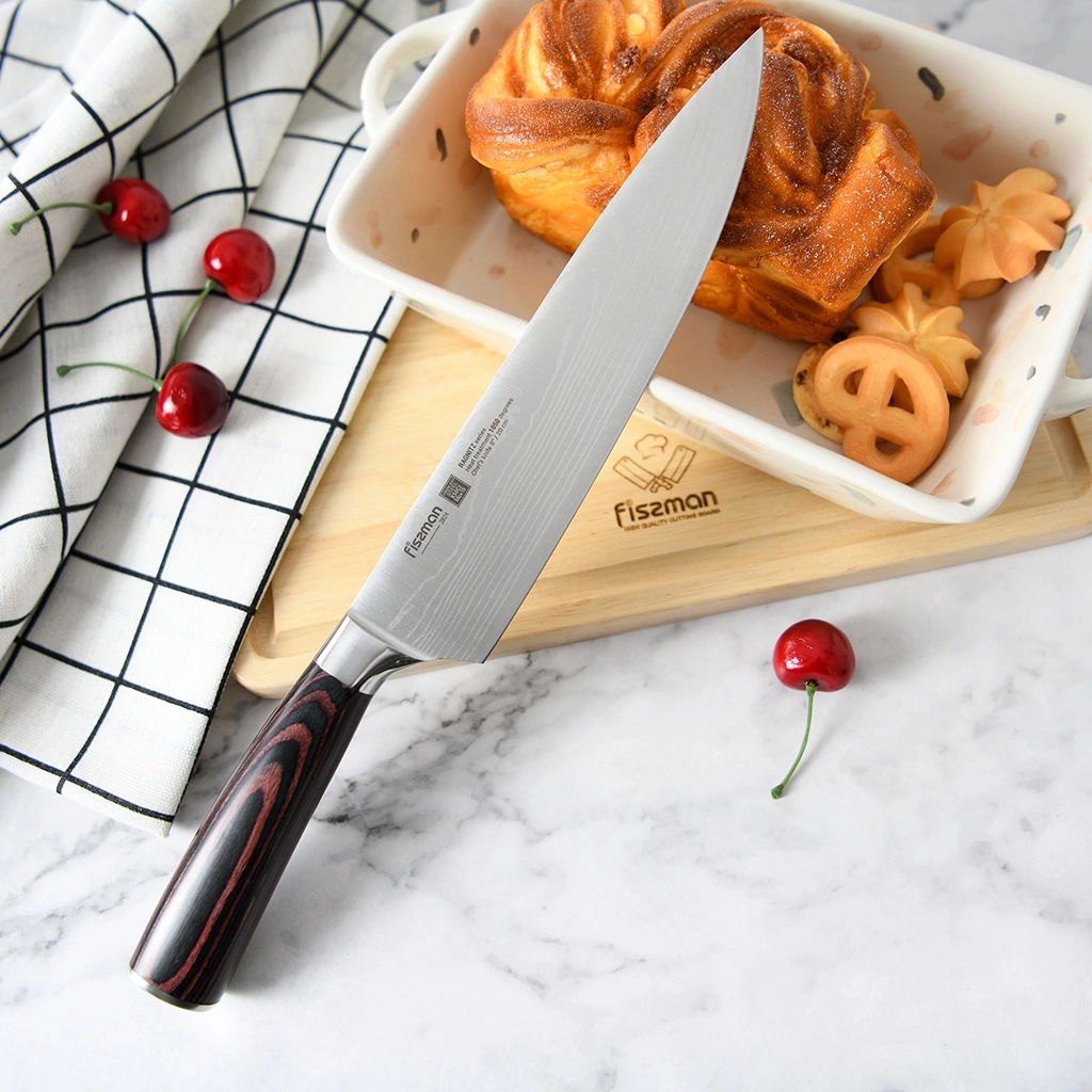 Поварской нож – незаменимый помощник на кухне. Им можно нарезать филе, нашинковать овощи, разделать мясо. Им также легко давить чеснок и другие специи, отбивать заготовки для стейков или разбивать панцирь крабов.