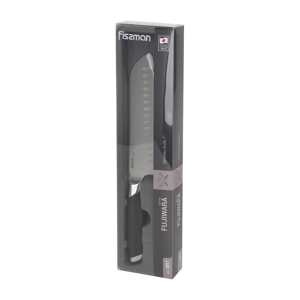 Кухонные ножи серии FUJIWARA выполнены из высоколегированной японской стали AUS-6, закаленной до 57 единиц по шкале Роквелла.