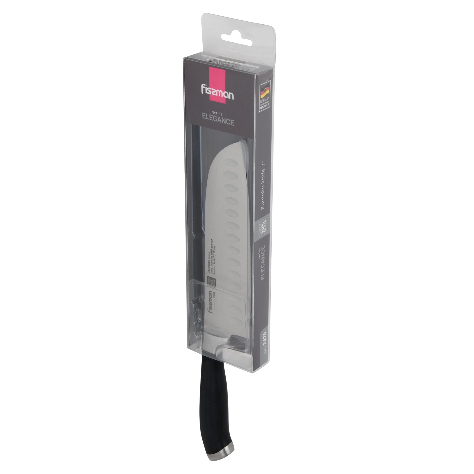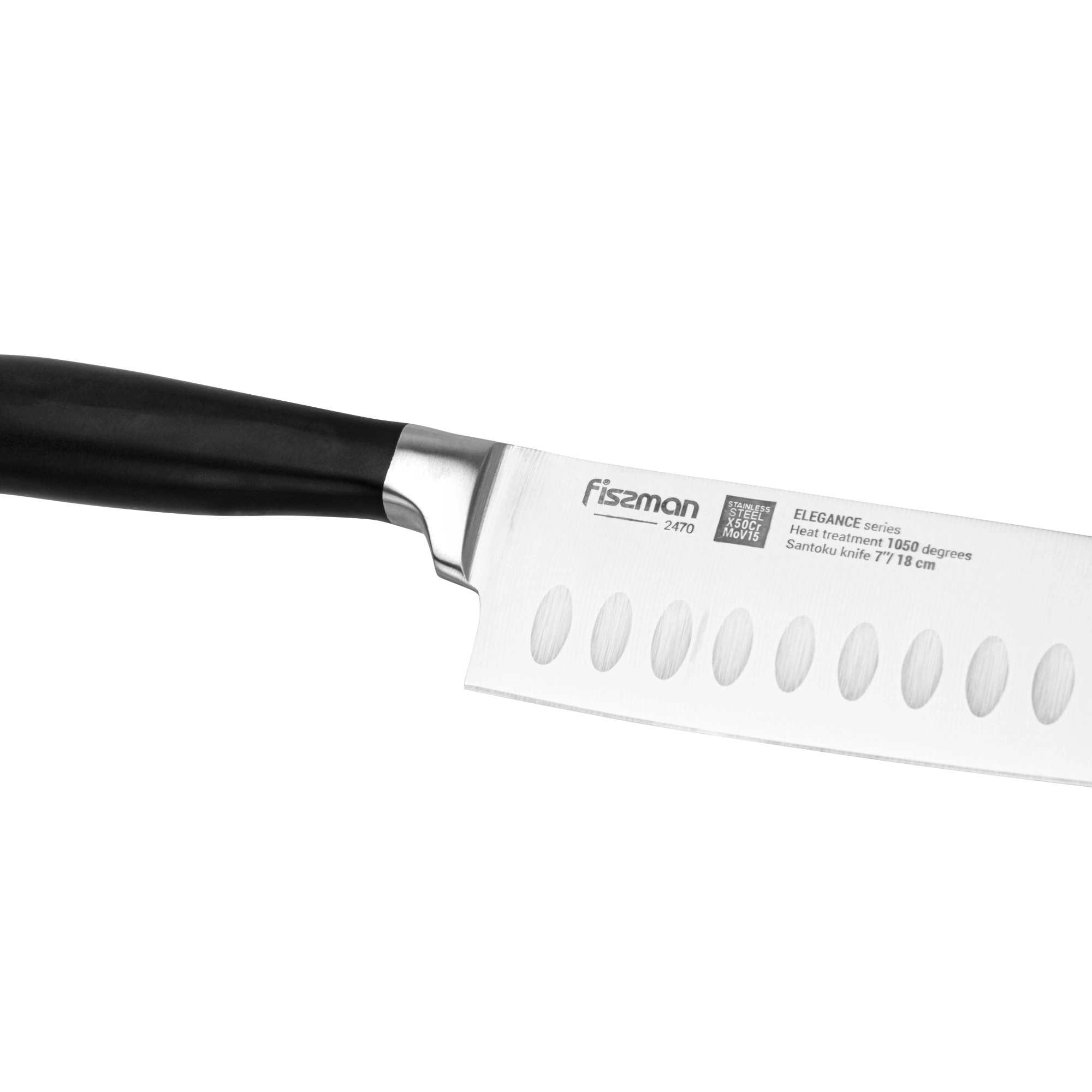 Кухонные ножи серии ELEGANCE выполнены из высоколегированной немецкой стали X50CrMoV15, закаленной до 57 единиц по шкале Роквелла.