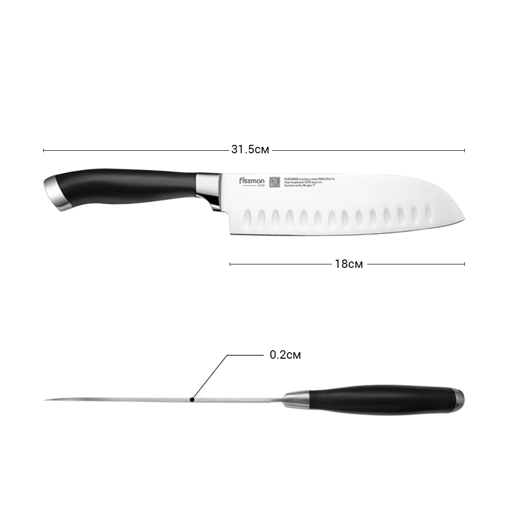 Лезвия имеют двухстороннюю симметричную заточку по всей длине режущей кромки, что обеспечивает легкую нарезку и разделку. https://fissman.ru/catalog/kuhonnye-nozhi/nozhi-santoku/nozhi-santoku-dlina-klinka-18-sm/nozh-povarskoy-santoku-18-sm-elegance/