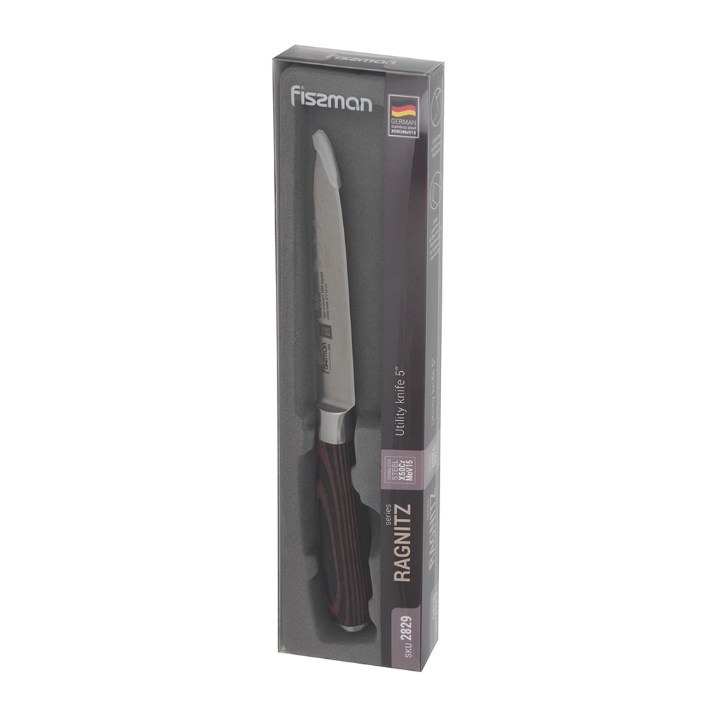 Кухонные ножи серии RAGNITZ выполнены из высоколегированной немецкой стали X50Cr15MoV, закалённой до 57 единиц по шкале Роквелла. Они обладают повышенной прочностью и подходят для частого использования. Лезвия имеют двухстороннюю симметричную заточку по всей длине режущей кромки, что обеспечивает лёгкую нарезку и разделку. Рукоятки из материала Pakka имеют элегантную форму и обеспечивают надёжный захват. Изготовленные по особой технологии они очень удобны и эргономичны. Благодаря этой конструкции ножи безупречно сбалансированы и хорошо лежат в руке. https://fissman.ru/catalog/kuhonnye-nozhi/nozhi-universalnye/universalnye-nozhi-dlina-klinka-13sm/nozh-universalnyy-13-sm-ragnitz/