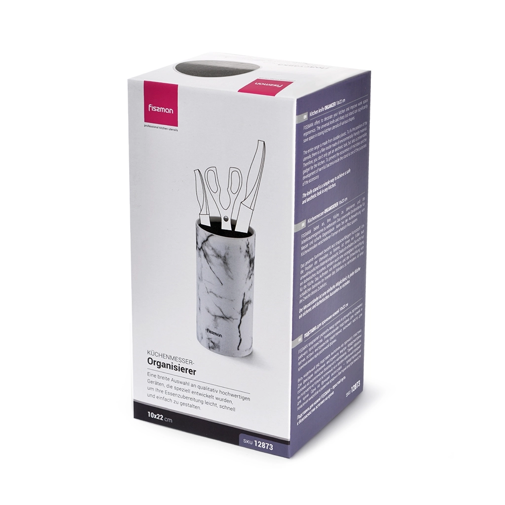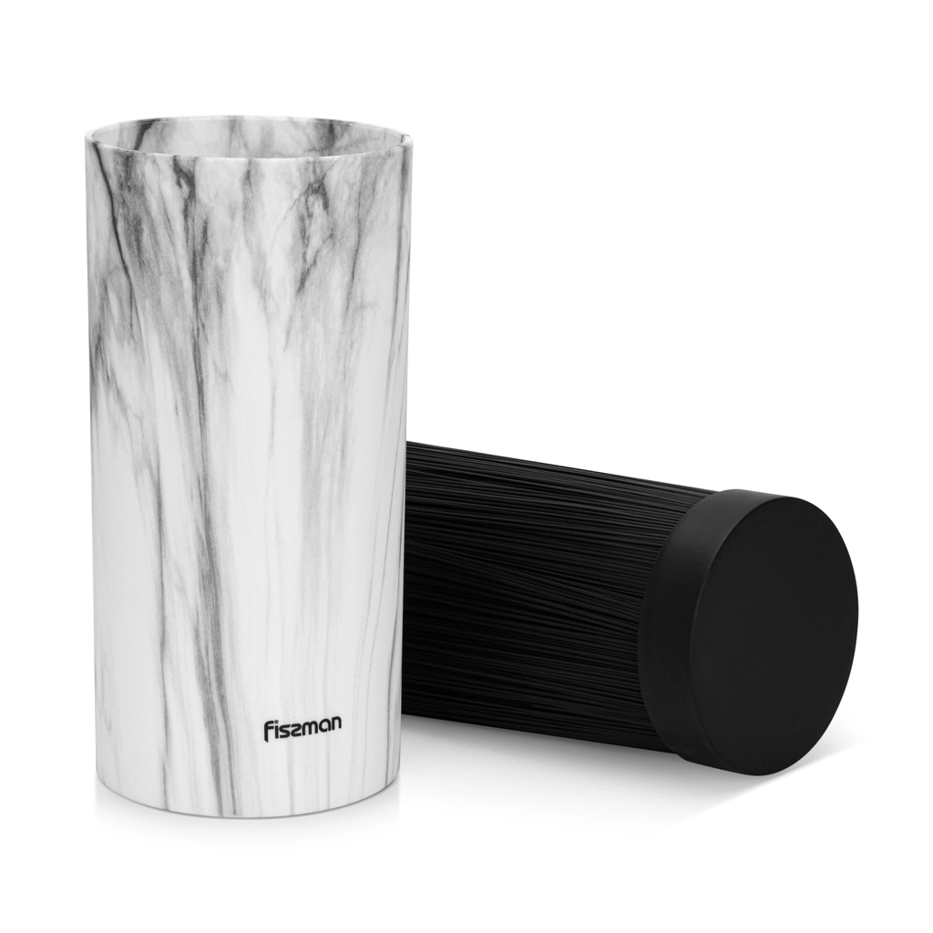 Подставка для ножей и прочих острых инструментов существенно экономит место для хранения инвентаря различной формы. Таким образом, вы получаете не только эстетичный, но и презентабельный предмет для кухни. Соломка легко вынимается, что дает возможность регулярно промывать ее, избегая тем самым появления микробов и развития вредных бактерий.