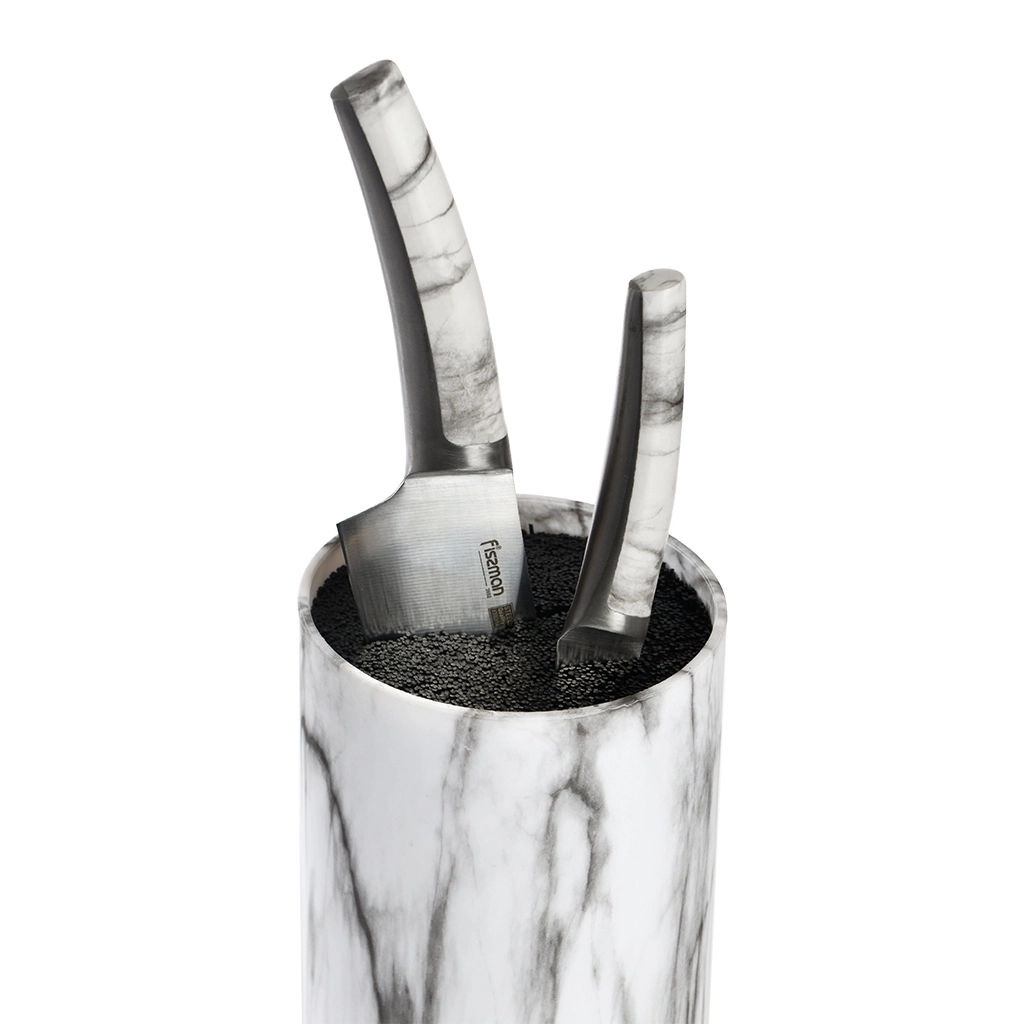Подставка изготовлена из прочного пластика. Для фиксации положения инструмента внутри предусмотрена соломка из экологически безопасного материала. https://fissman.ru/catalog/kuhonnye-nozhi/podstavki-dlya-nozhey-magnitnye-planki/vysota-podstavki-dlya-nozhey-22-sm/plastikovaya-podstavka-dlya-nozhey-kruglaya-10-kh10-kh-22-sm-art-12873/