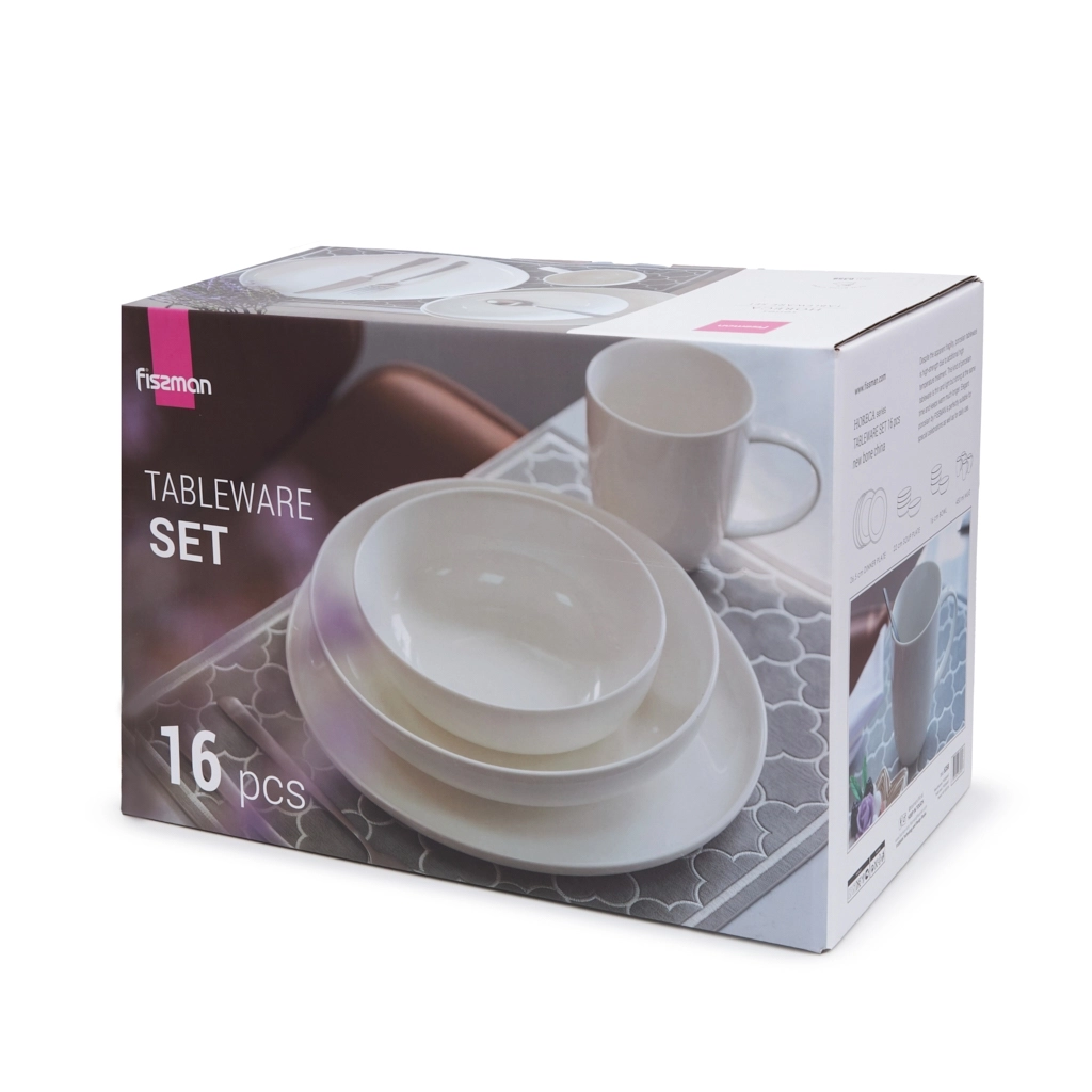 Набор посуды HORECA состоит из кружек 450 мл / 4 шт; мисок 16 см / 4шт; тарелок 26,5 см / 4 шт; глубоких тарелок 22 см / 4шт. https://fissman.ru/catalog/posuda/farforovaya-posuda/nabory-posudy-iz-farfora/nabor-stolovoy-posudy-na-4-persony-16-pr-iz-farfora-horeca/