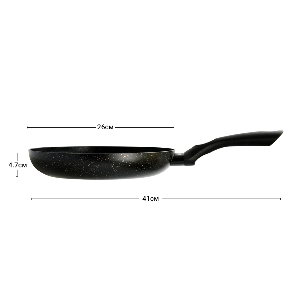 • Поверхность покрытия гладкая, с золотыми и серебряными вкраплениями. Посуда эффектно смотрится и способна стать украшением любой кухни.