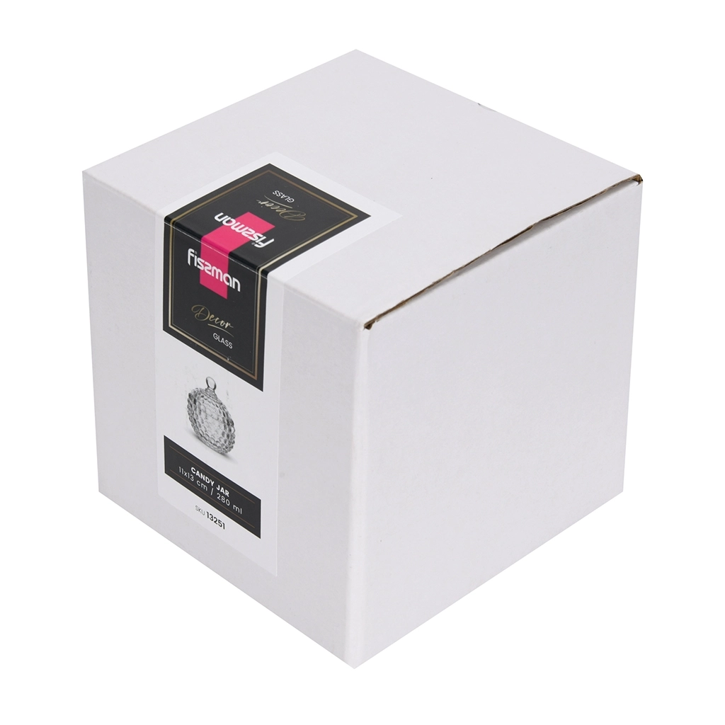 Конфетница с крышкой https://fissman.ru/catalog/posuda/steklyannaya-posuda/konfetnitsy-steklyannye/konfetnitsa-s-kryshkoy-11-kh-13-sm-280-ml-steklo/  11 х 13 см / 280 мл (стекло)