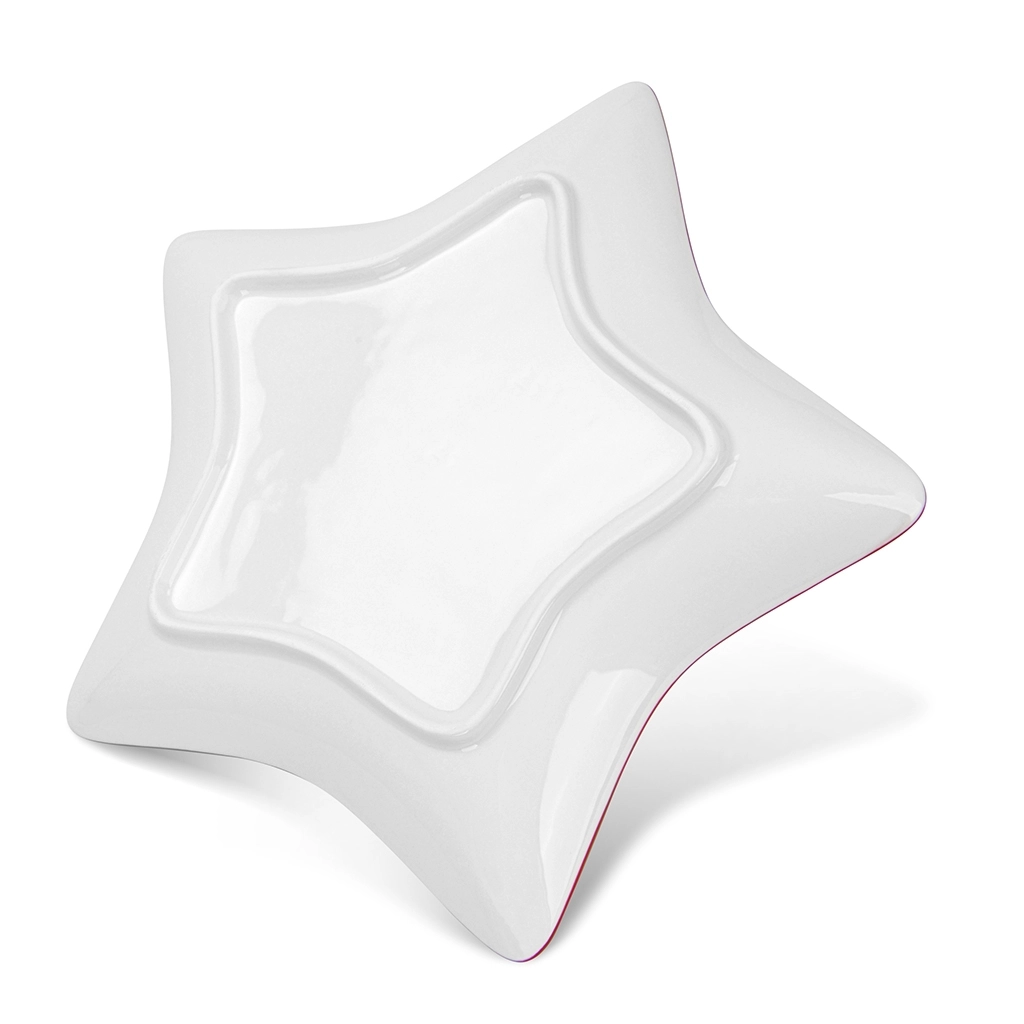 Оригинальная форма в виде звезды не только привлекает внимание, но и предоставляет удобное размещение для закусок, десертов, фруктов или нарезанных продуктов. Благодаря размеру, блюдо может подаваться как самостоятельное блюдо или как часть композиции на большом столе.