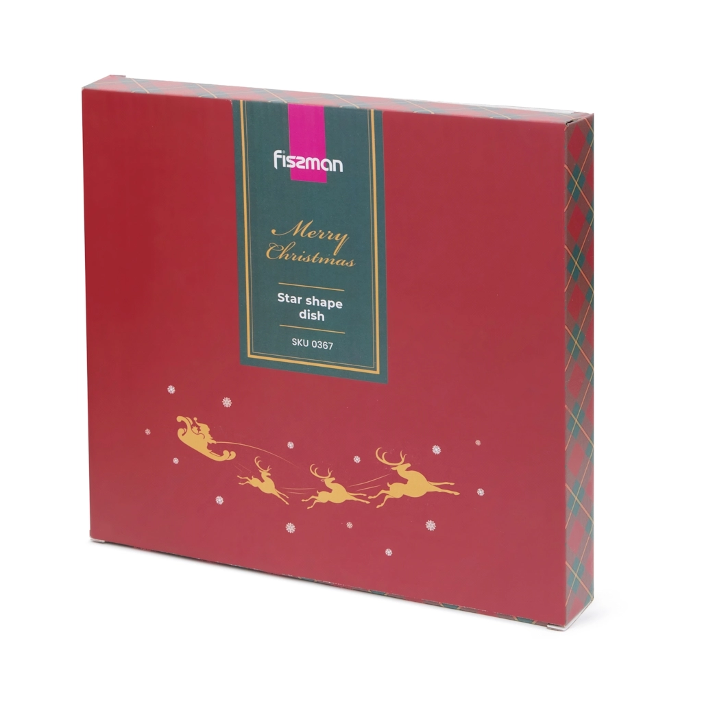 Блюдо необычной формы в виде звезды MERRY CHRISTMAS представляет собой оригинальное и практичное решение для тех, кто стремится к выразительной и продуманной сервировке. Это блюдо может стать центральным элементом праздничного стола.