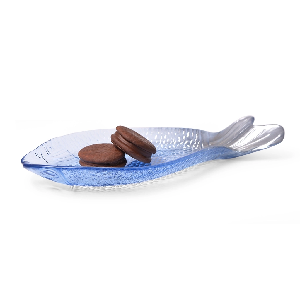 Блюдо выполнено из высококачественного прозрачного стекла, которое отличается экологичностью и безопасностью. Форма рыбы не только символична, но и функциональна - удобно выкладывать цельную запечённую рыбу или ассорти из морепродуктов. Гладкая поверхность легко моется, не впитывает запахи и сохраняет свежесть продуктов.