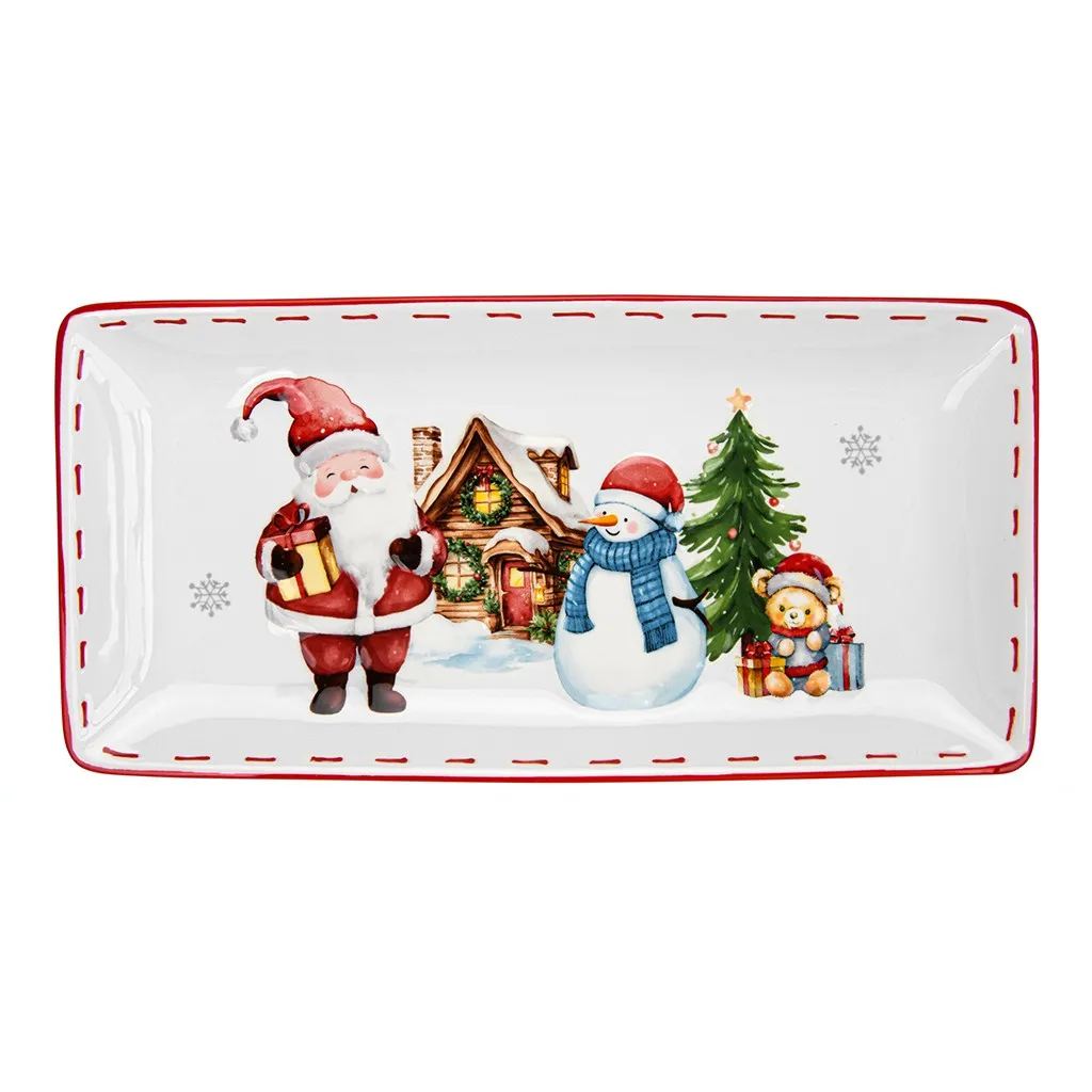 Прямоугольное блюдо MERRY CHRISTMAS представляет собой функциональное и эстетически привлекательное изделие, предназначенное для тех, кто ценит тщательную подачу блюд и гармоничное оформление стола. Блюдо является частью коллекции с новогодним дизайном, в которой собраны различные изделия, создающие целостную праздничную атмосферу. Все изделия коллекции, будь то тарелка, миска, менажница или блюдо, выполнены в едином стиле.