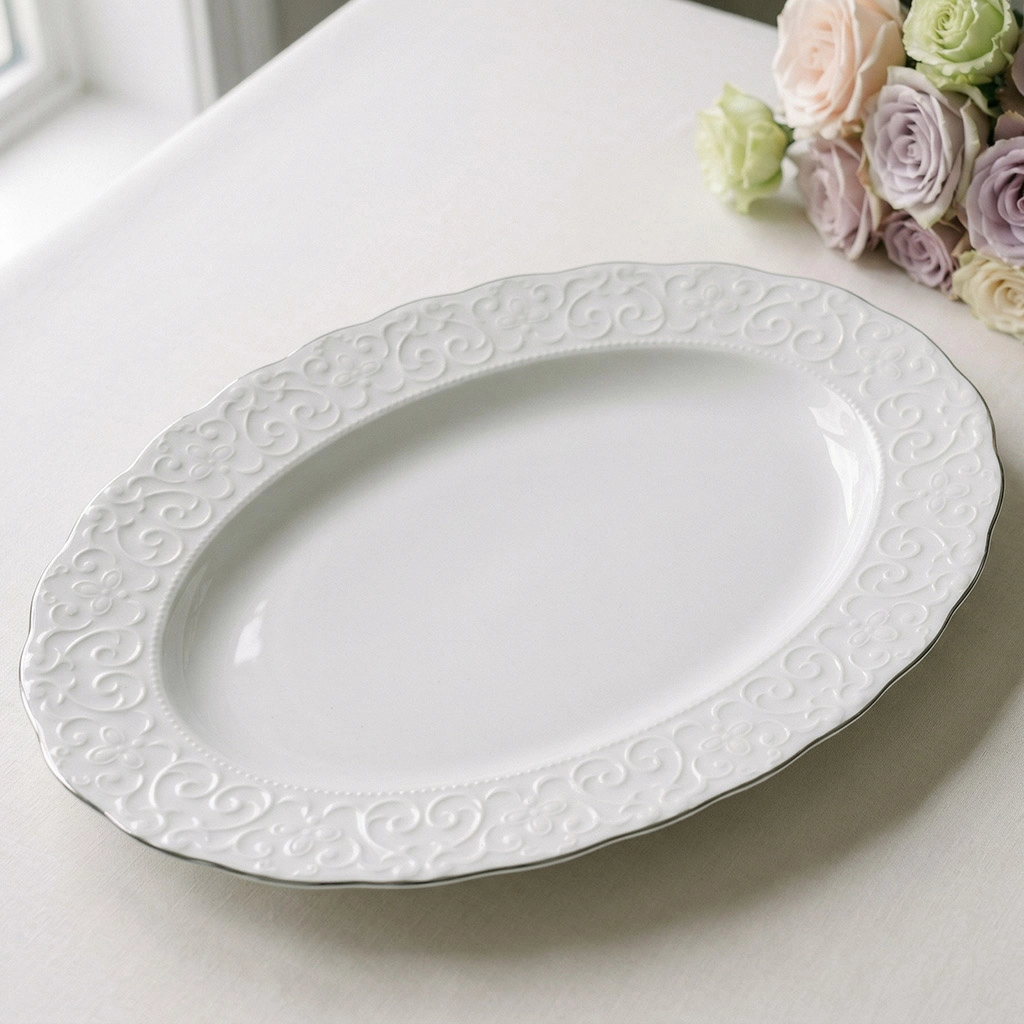 Серия MADRID изготовлена из фарфора – чрезвычайно износостойкого и прочного материала, что делает посуду идеальной для ежедневного использования, превращая обычный обед в праздник и, без сомнений, впишется в любой интерьер, сделав его торжественным и стильным. Благодаря великолепному дизайну и высококачественному исполнению эта посуда станет роскошным подарком. Предметы не объединены в наборы, что позволяет подобрать оптимальное количество под любую семью. https://fissman.ru/catalog/servirovka-stola/blyuda/ovalnye-blyuda/blyudo-farforovoe-ovalnoe-dlya-servirovki-28-sm-madrid/