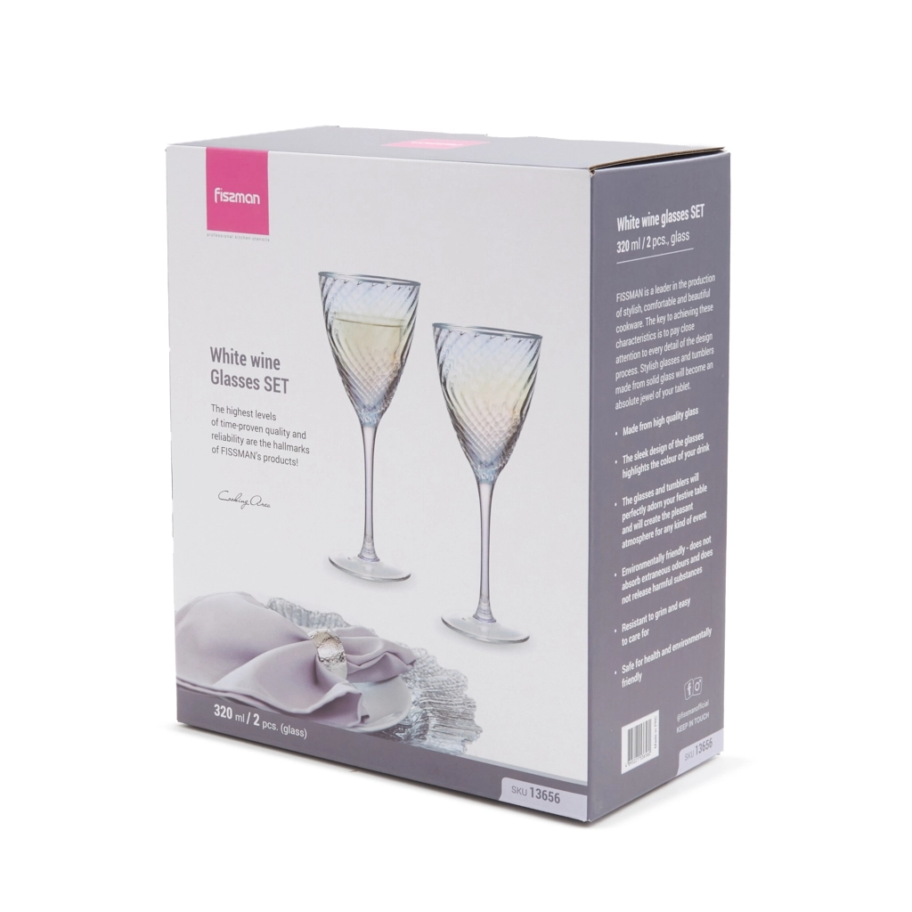 Компания FISSMAN является лидером в производстве стильной, удобной и красивой посуды. Залогом успеха в решении этой задачи является пристальное внимание к каждому элементу дизайна. Элегантные бокалы и стаканы из стекла станут настоящим украшением вашего стола.. https://fissman.ru/catalog/servirovka-stola/bokaly/nabor-iz-2-kh-bokalov-dlya-belogo-vina-320-ml-steklo-art-13656/