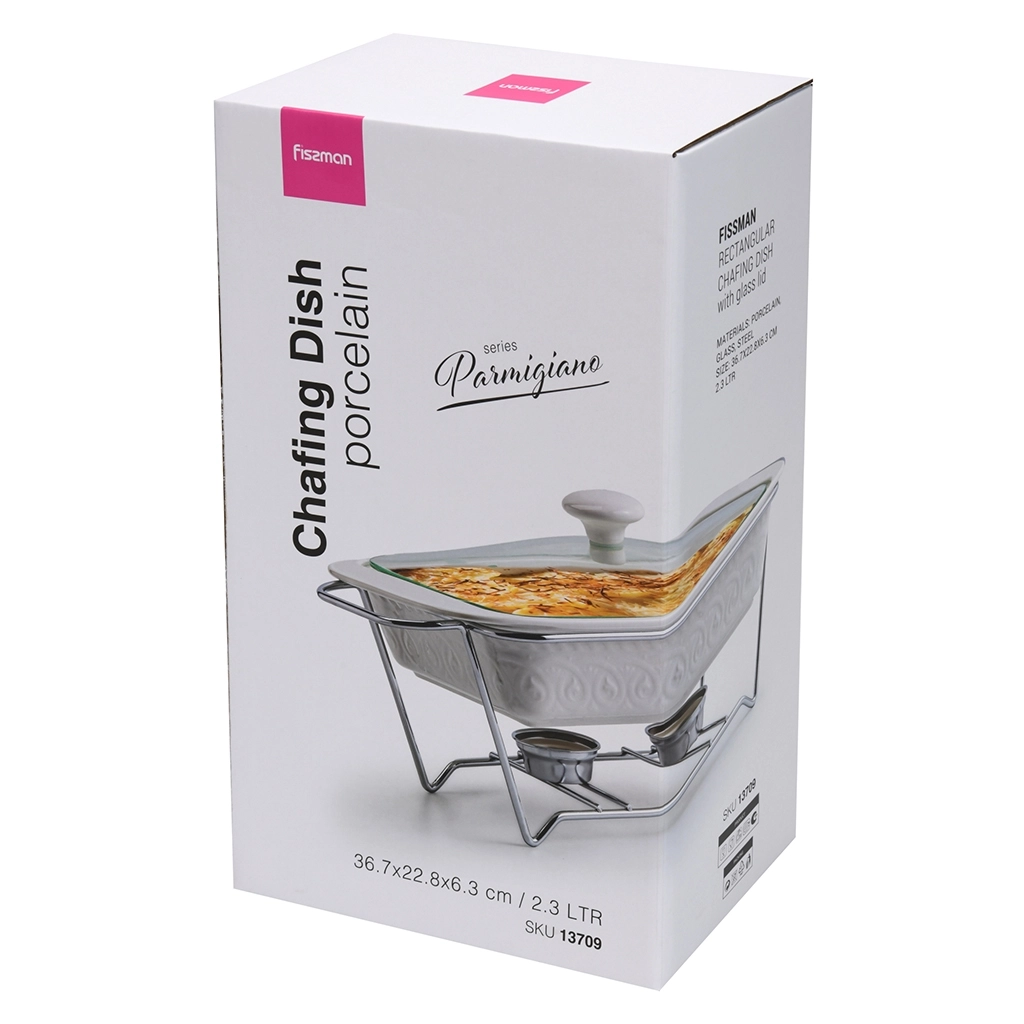 Подавайте блюда не просто горячими, а по-настоящему изысканными с фарфоровым мармитом Parmigiano. Эта элегантная сервировочная форма сохраняет тепло благодаря подставке с двумя свечами и прозрачной стеклянной крышке. Изящная ручная отделка фарфора придаёт каждой модели уникальный характер, превращая каждую трапезу в событие. https://fissman.ru/catalog/servirovka-stola/marmity-fondyu/marmit-iz-farfora-36-7-x-22-8-x-6-3-sm-2-3-l-parmigiano/