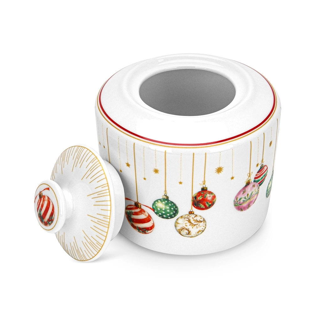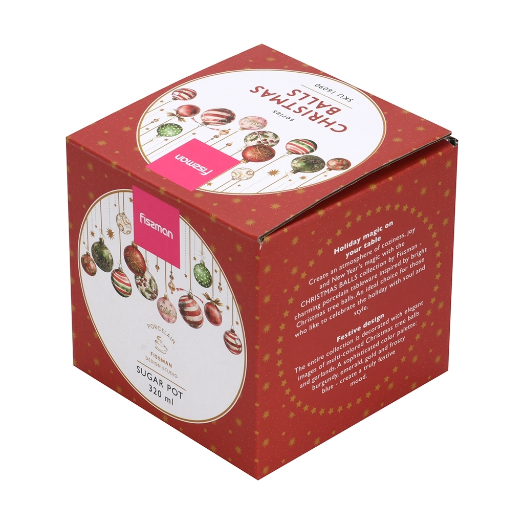 На праздничном столе важна каждая деталь. Сахарница Christmas Balls превращает обычное чаепитие в уютный ритуал. Белый фарфор, яркий узор ёлочных шаров и удобная крышка создают атмосферу праздника уже при одном взгляде.