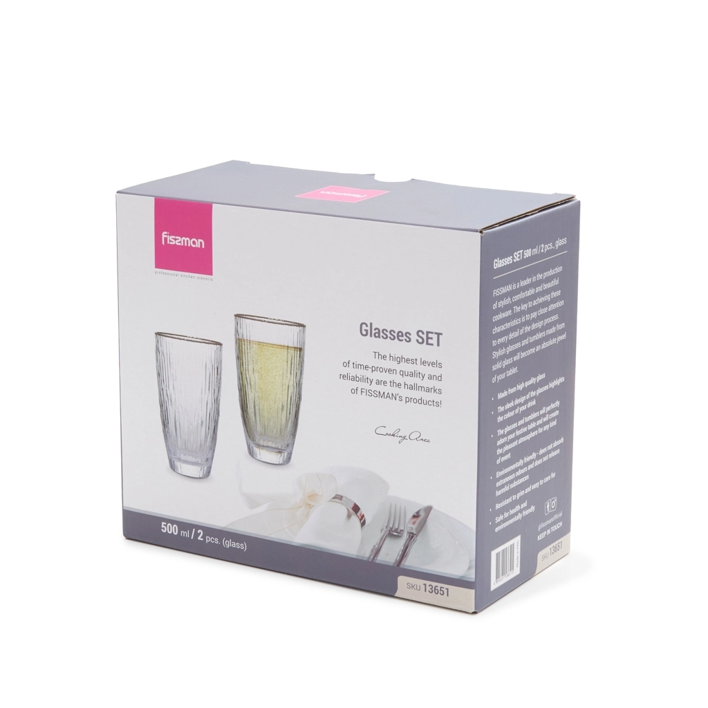 Компания FISSMAN является лидером в производстве стильной, удобной и красивой посуды. Залогом успеха в решении этой задачи является пристальное внимание к каждому элементу дизайна. Элегантные бокалы и стаканы из стекла станут настоящим украшением вашего стола.. https://fissman.ru/catalog/servirovka-stola/stakany/nabor-iz-2-kh-stakanov-500-ml-dlya-napitkov-art-13651/