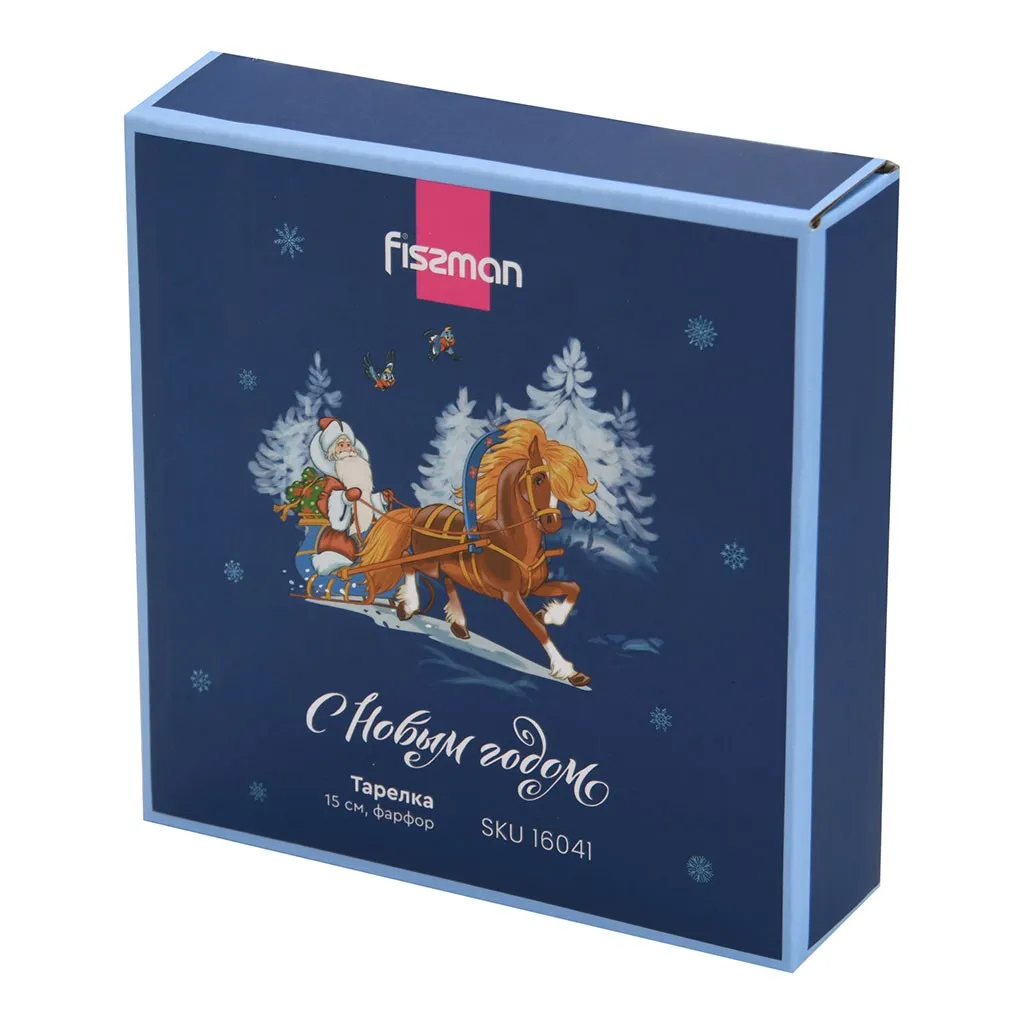 Фарфоровая тарелка 14,5 https://fissman.ru/catalog/servirovka-stola/tarelki/farforovaya-tarelka-15-sm-s-novym-godom-art-16041/  см "С Новым годом!" арт. 16041